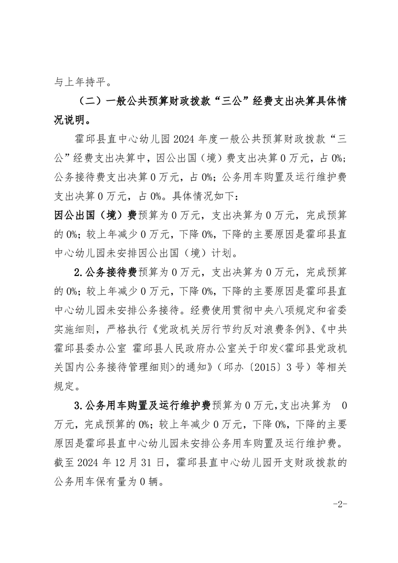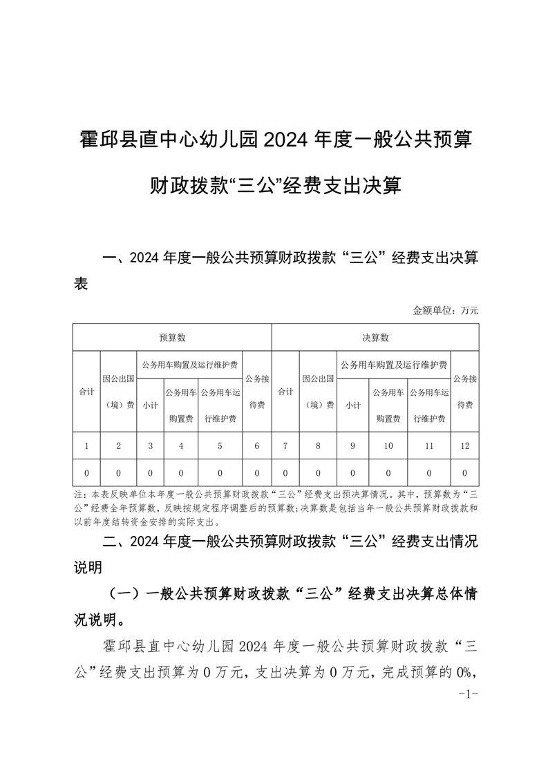 霍邱县直中心幼儿园 2024 年度一般公共预算财政拨款“三公”经费支出决算