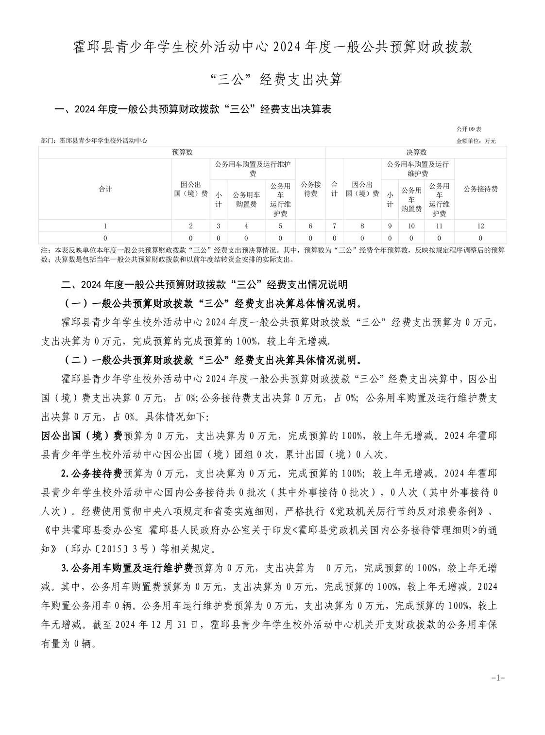霍邱县青少年学生校外活动中心 2024 年度一般公共预算财政拨款“三公”经费支出决算