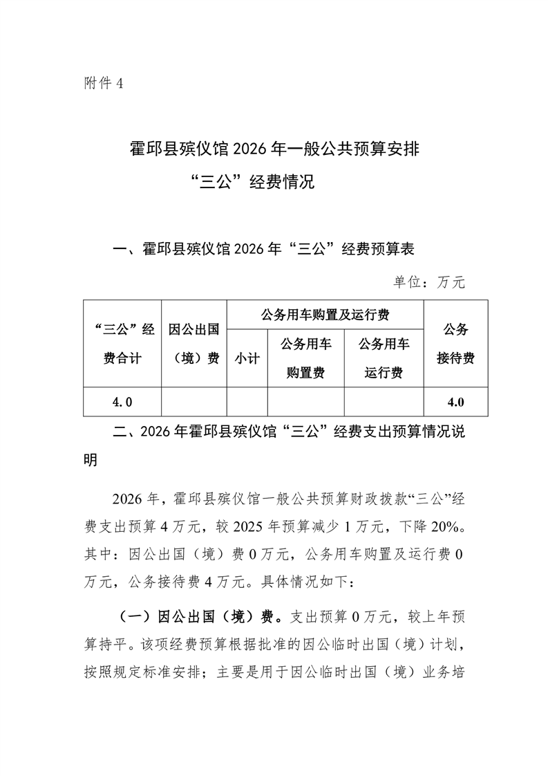 霍邱县殡仪馆2026年一般公共预算“三公”经费公开