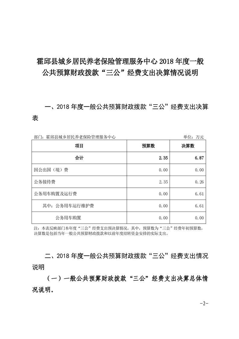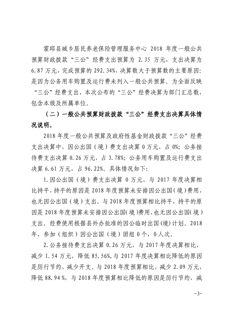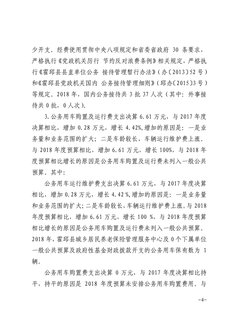 霍邱县城乡居民养老保险管理服务中心2018年度“三公”经费决算公开情况说明