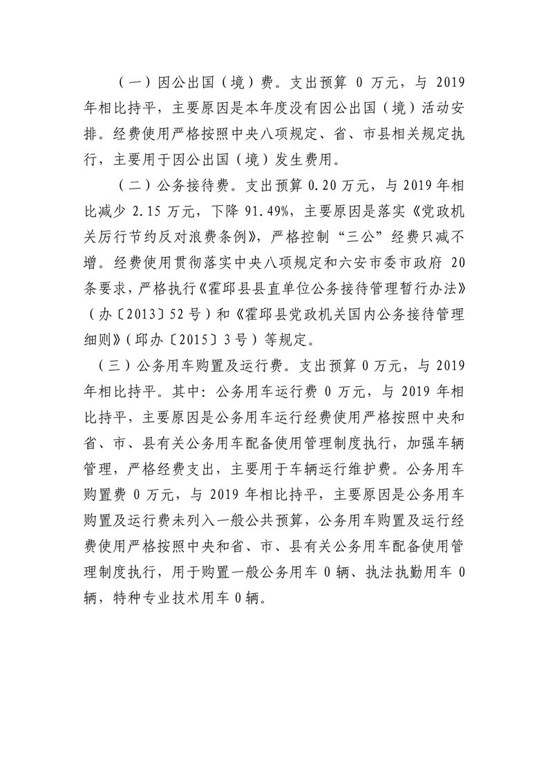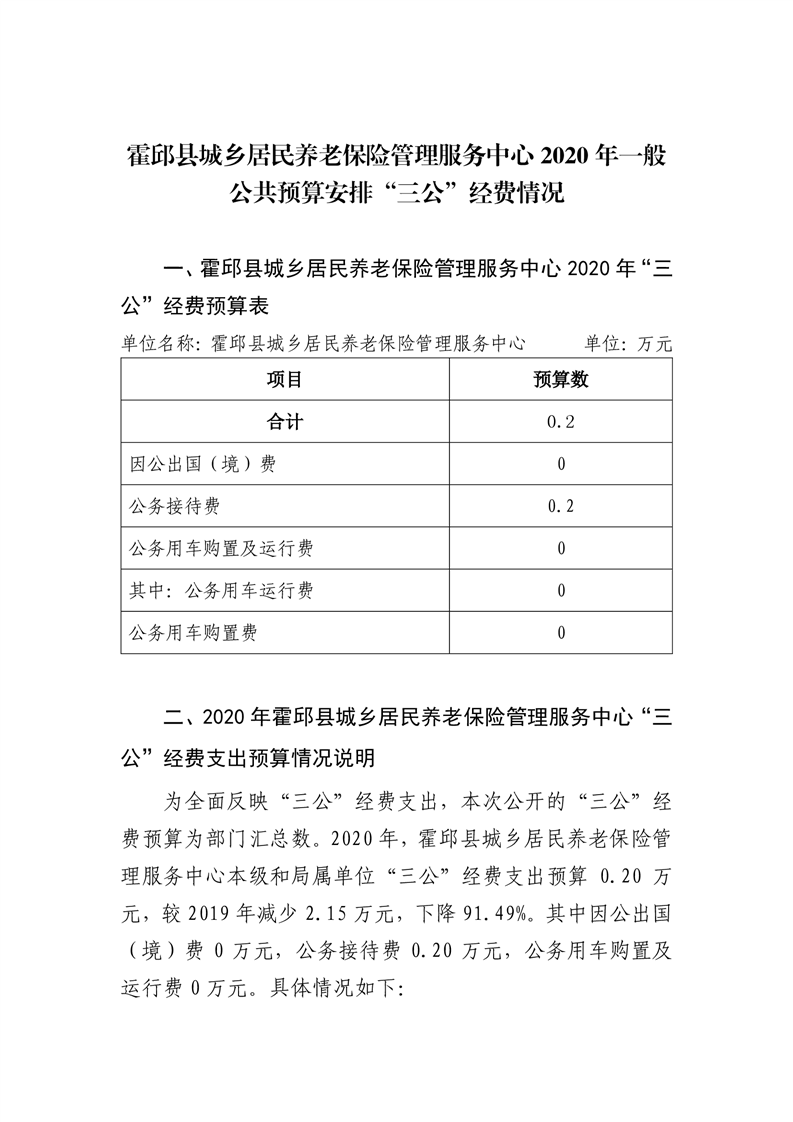 霍邱县城乡居民养老保险管理服务中心2020年部门“三公”经费预算公开
