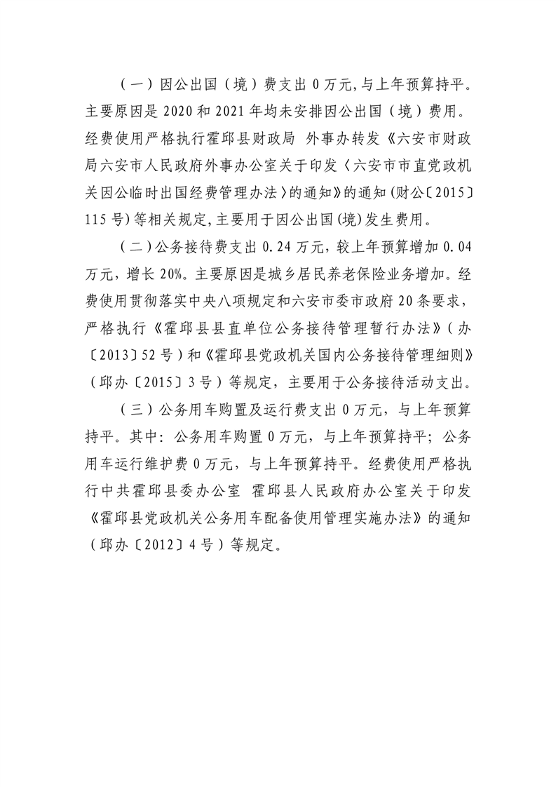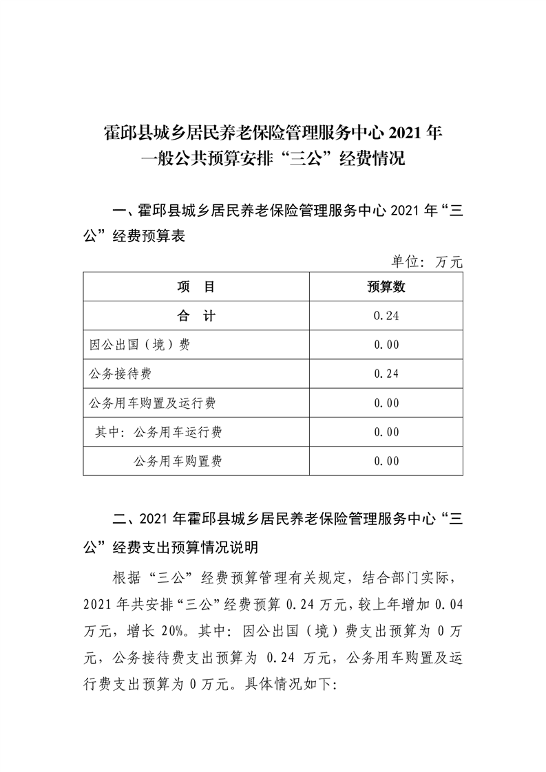 霍邱县城乡居民养老保险管理服务中心2021年部门“三公”经费预算公开