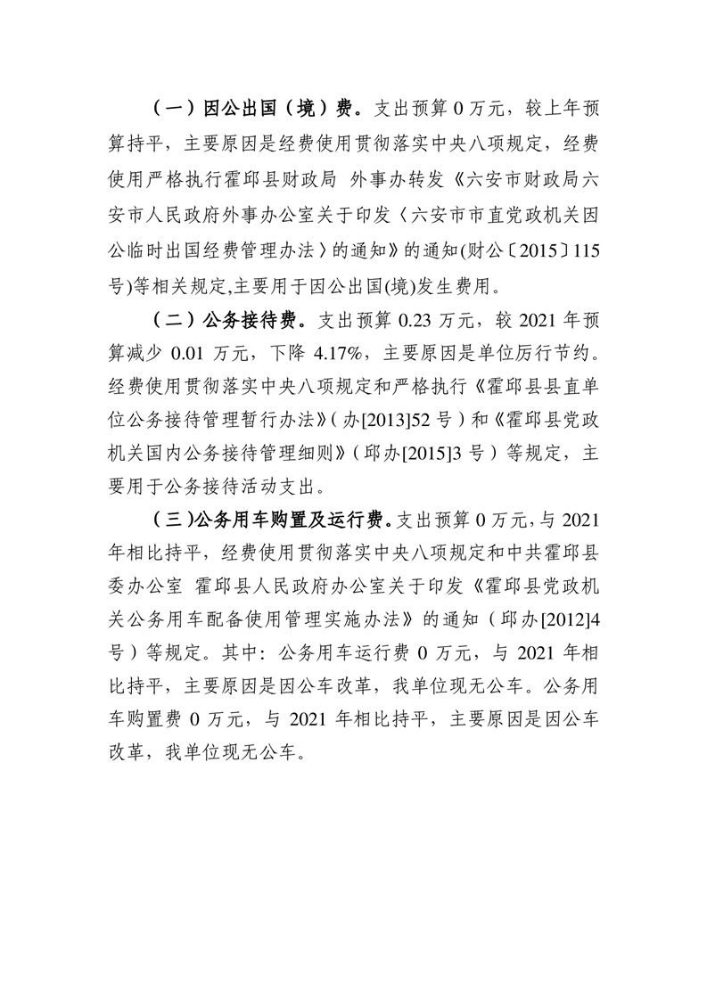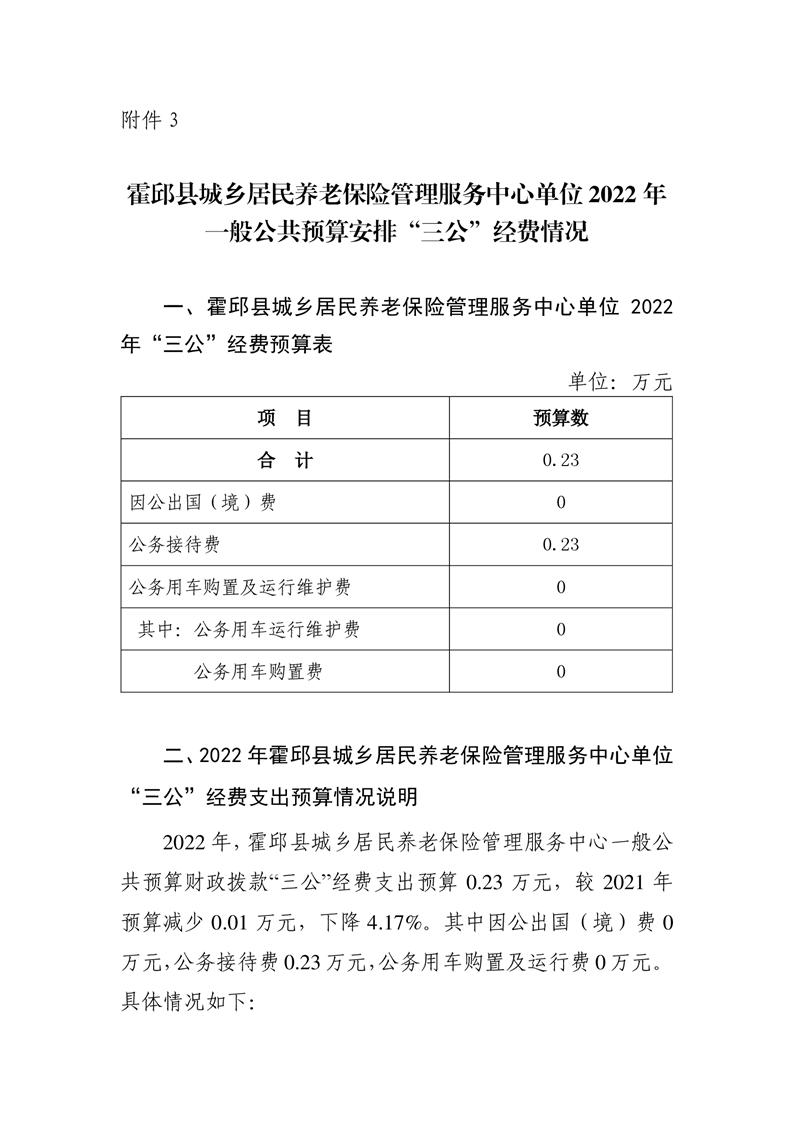霍邱县城乡居民养老保险管理服务中心2022年部门“三公”经费预算公开