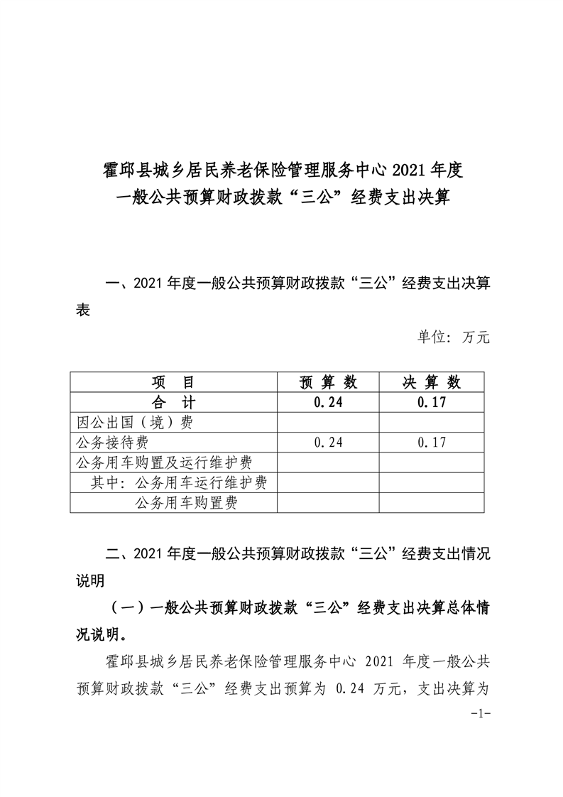 霍邱县城乡居民养老保险管理服务中心2021年一般公共预算财政拨款“三公”经费支出决算公开