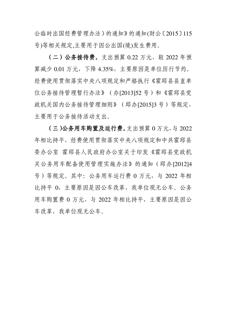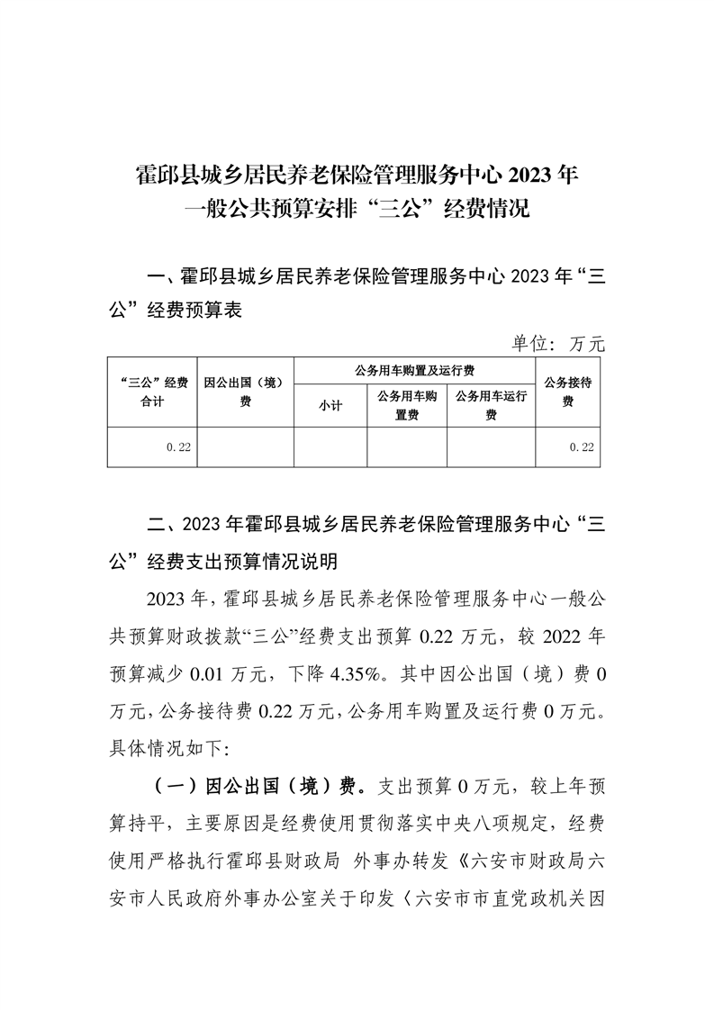 霍邱县城乡居民养老保险管理服务中心2023年一般公共预算安排“三公”经费情况公开