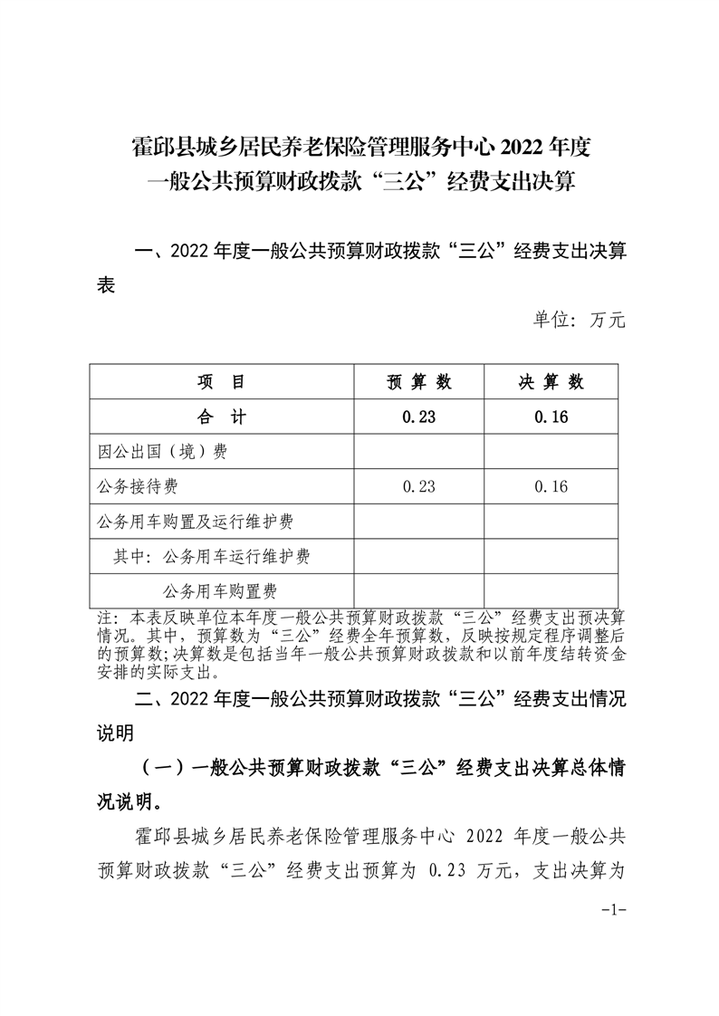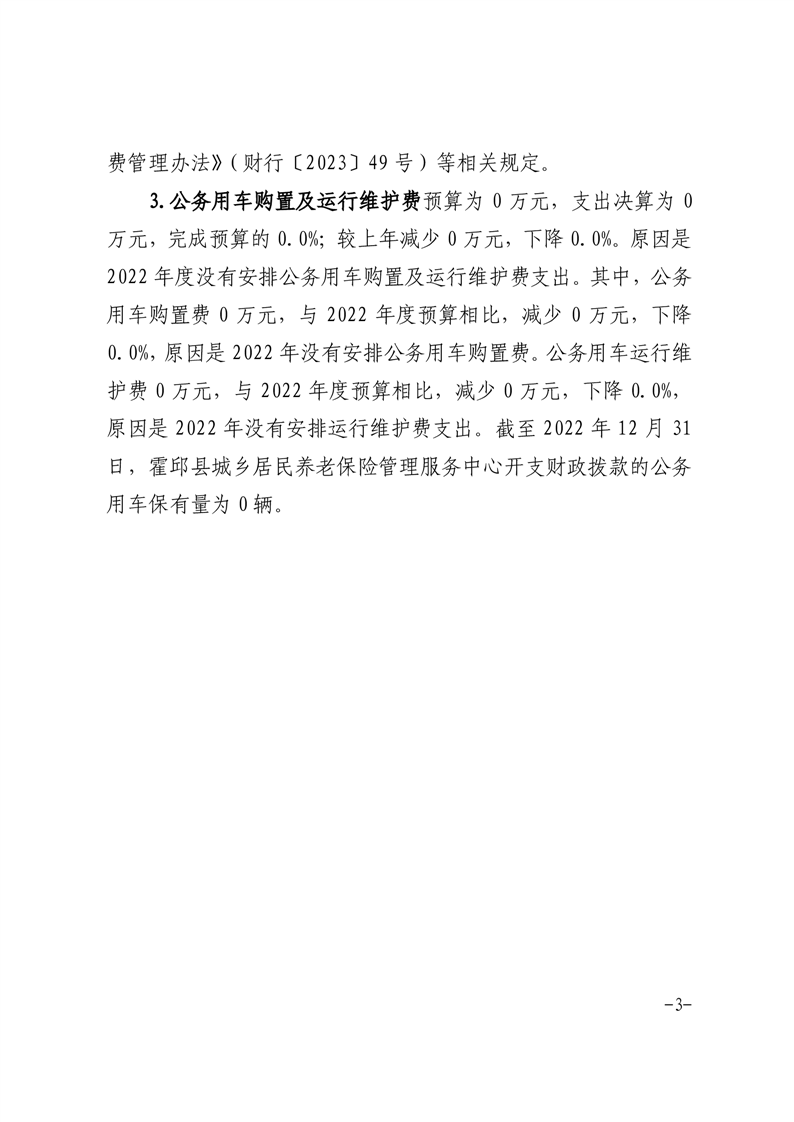 霍邱县城乡居民养老保险管理服务中心 2022 年度一般公共预算财政拨款“三公”经费支出决算