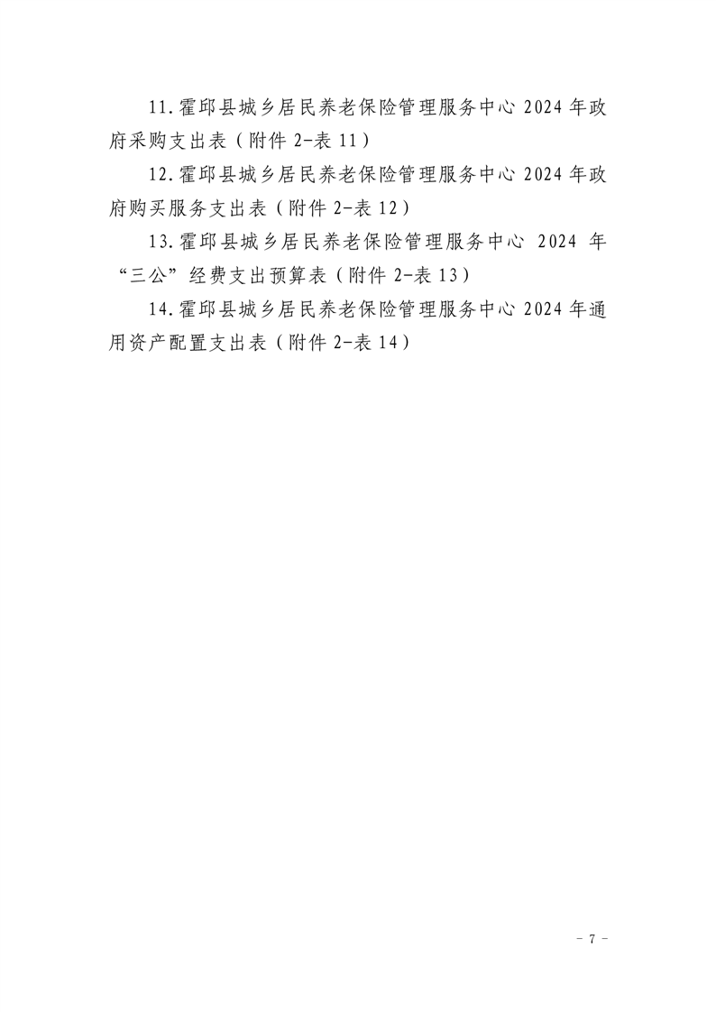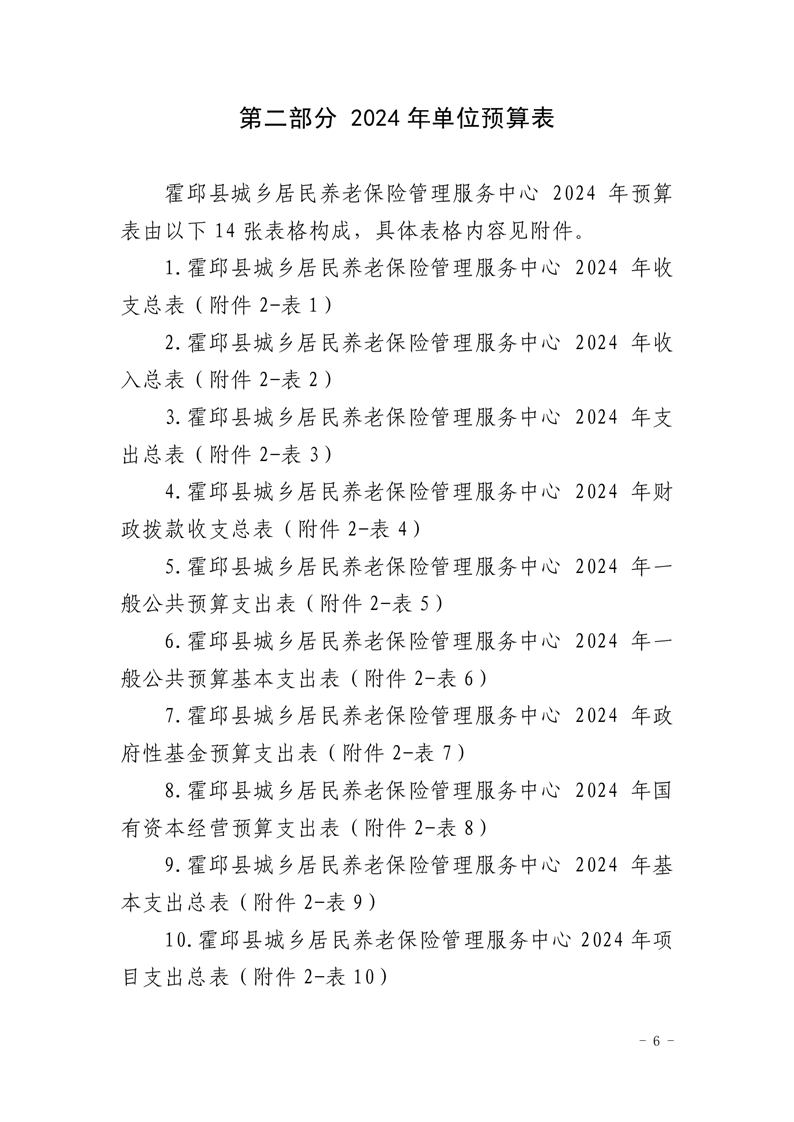 附件2:2024年部门单位预算公开报表-霍邱县城乡居民养老保险管理服务中心.pdf 附件3:2024年部门单位项目支出绩效目标公开-霍邱县城乡居民养老保险管理服务中心.pdf