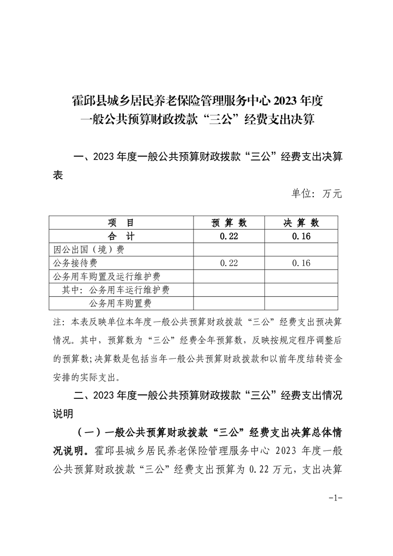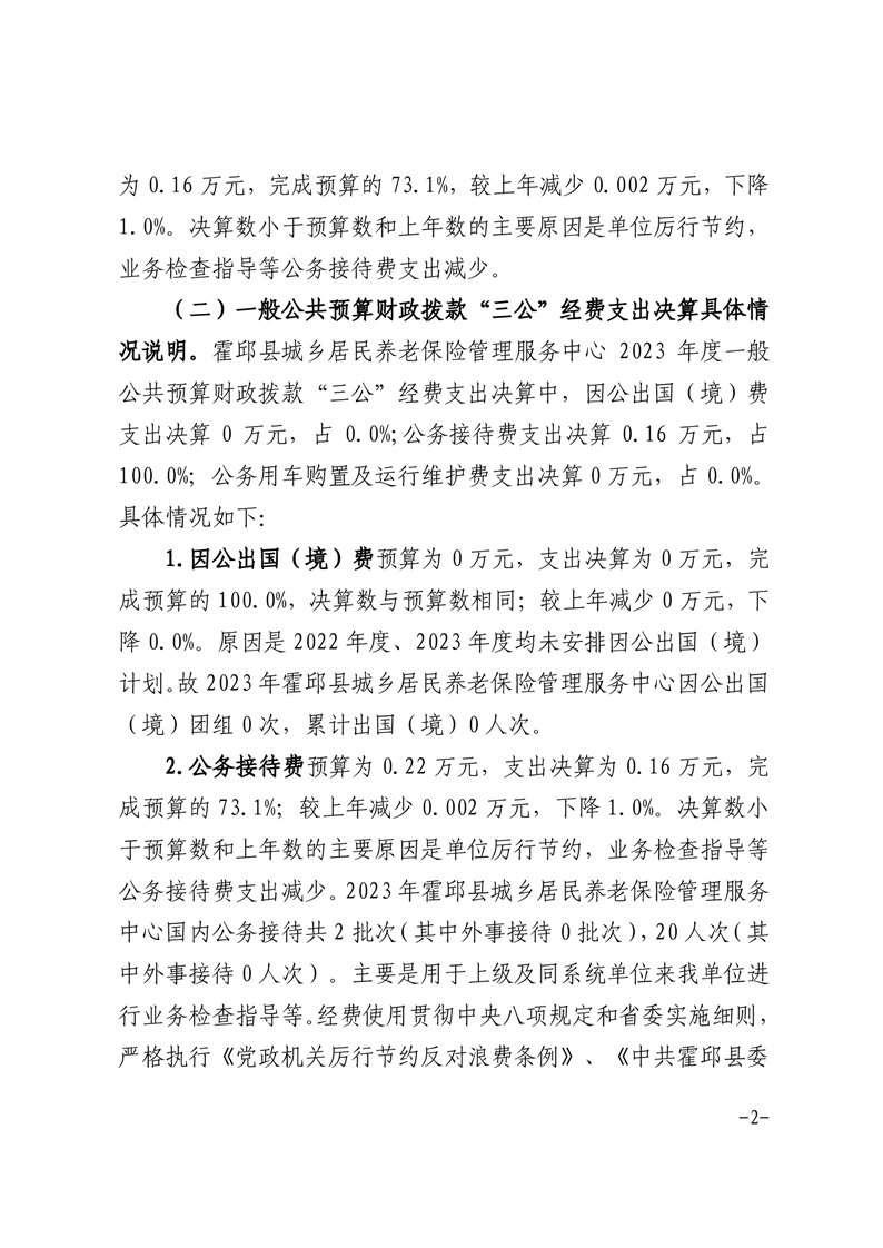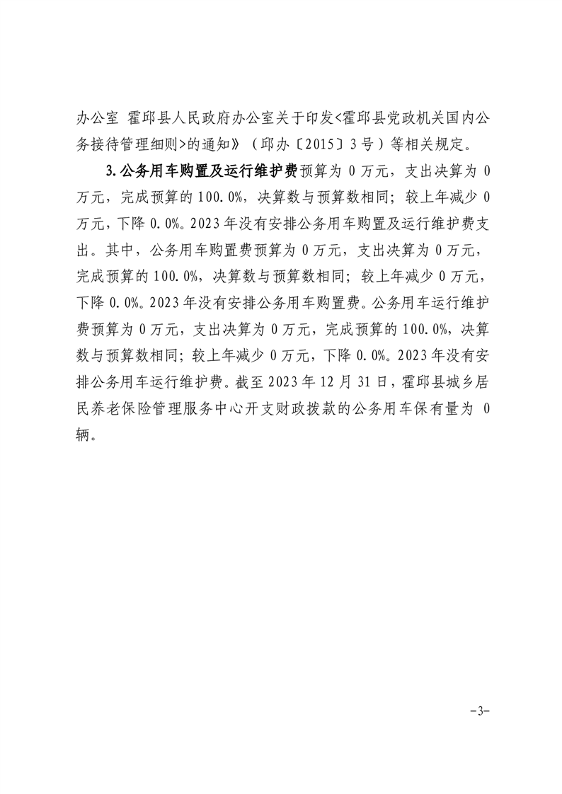 霍邱县城乡居民养老保险管理服务中心 2023 年度一般公共预算财政拨款“三公”经费支出决算公开