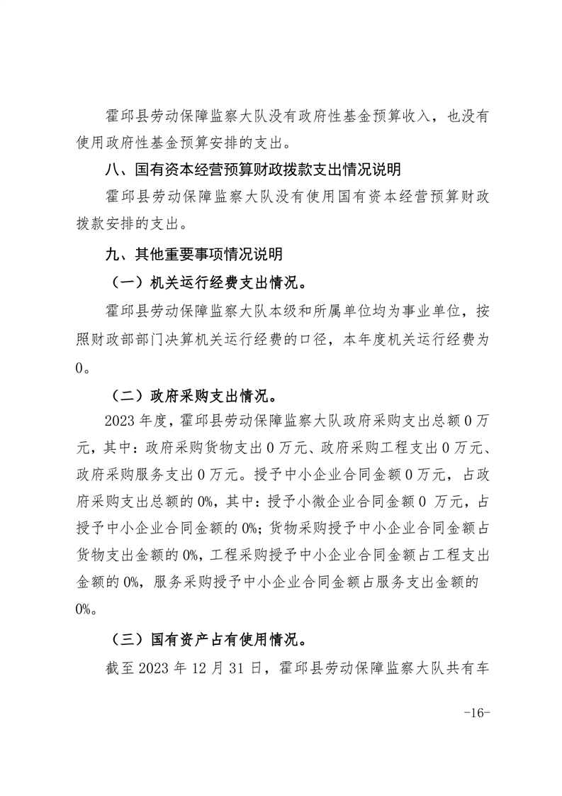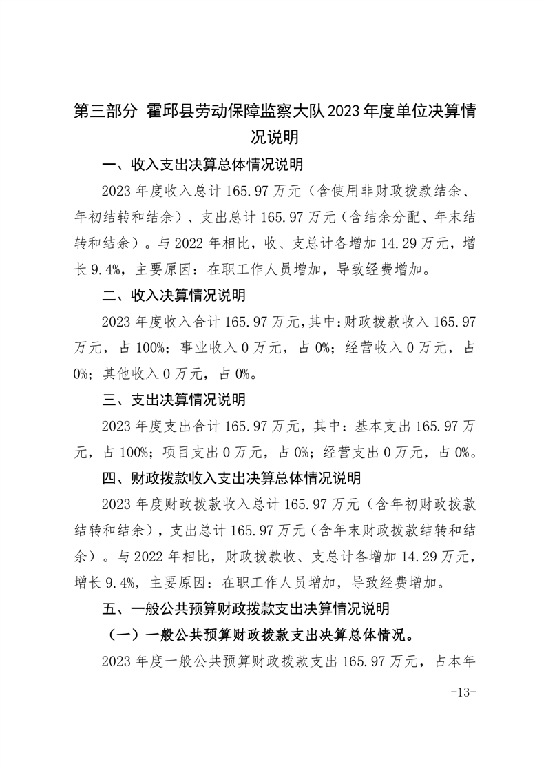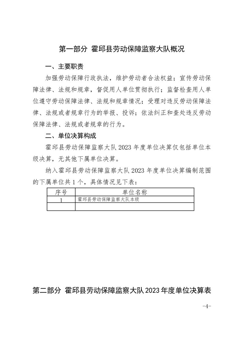 霍邱县劳动保障监察大队2023 年度单位决算公开