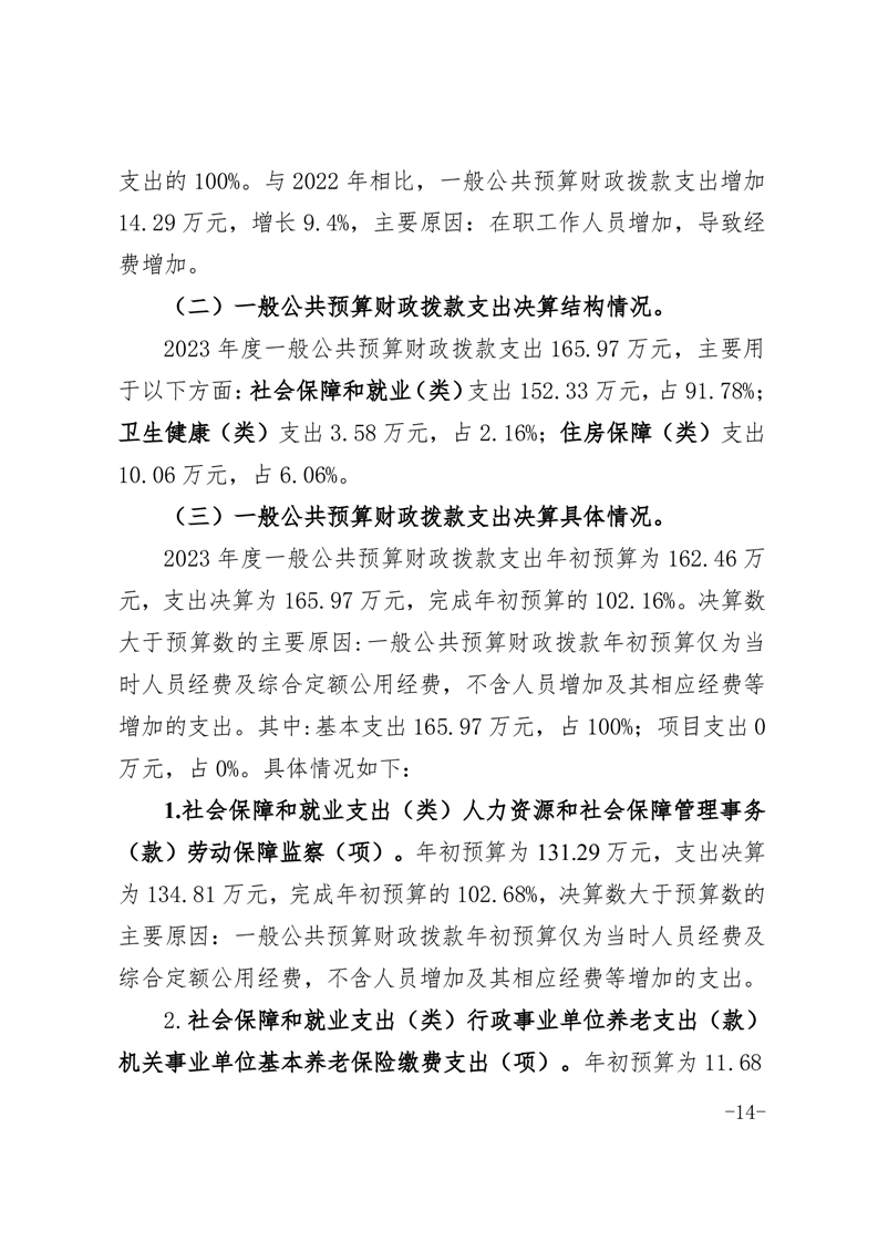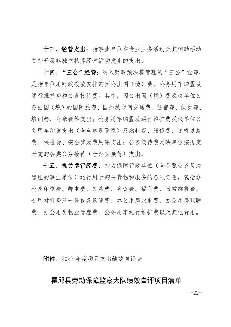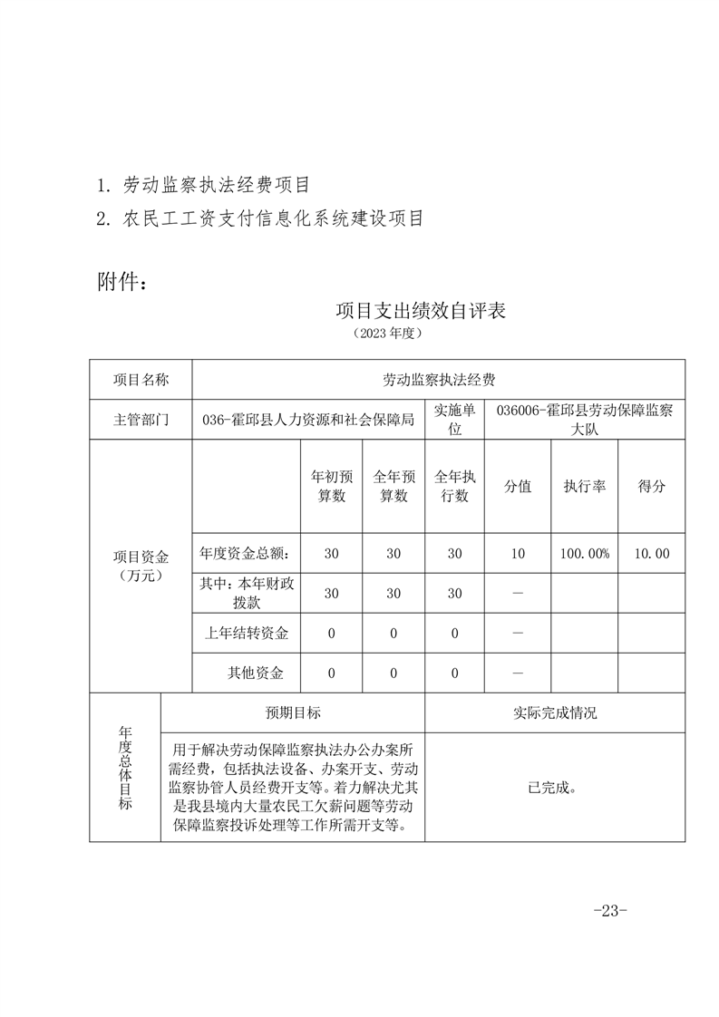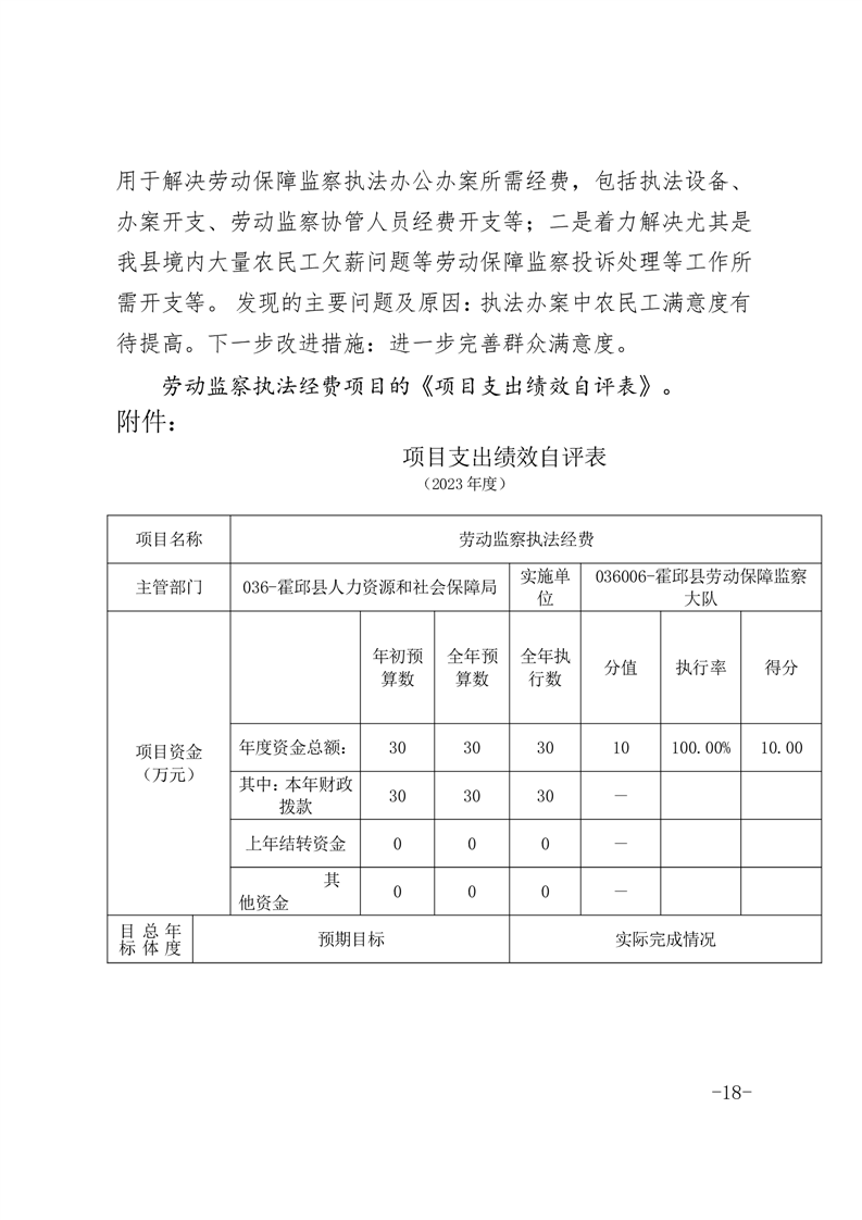 霍邱县劳动保障监察大队2023 年度单位决算公开
