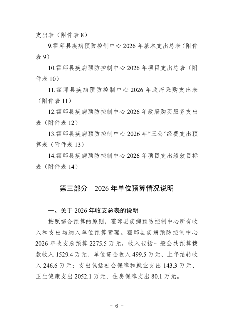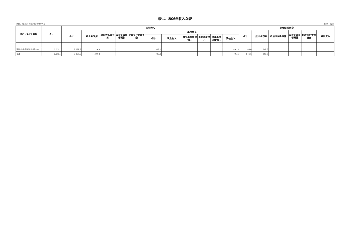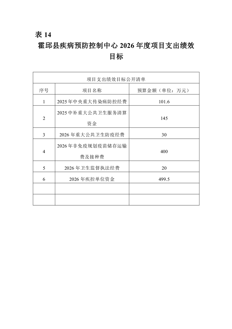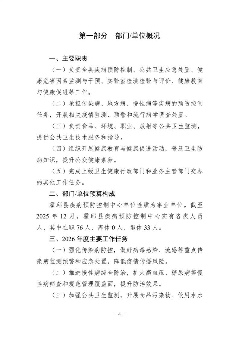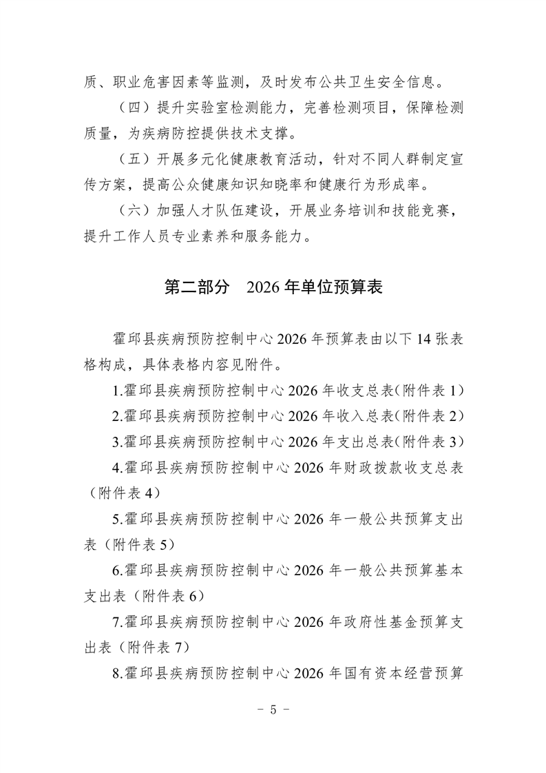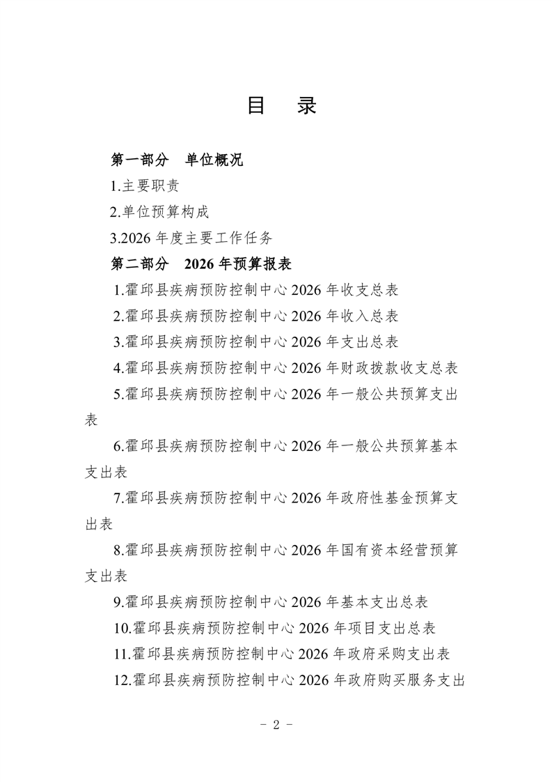 霍邱县疾病预防控制中心2026年单位预算公开