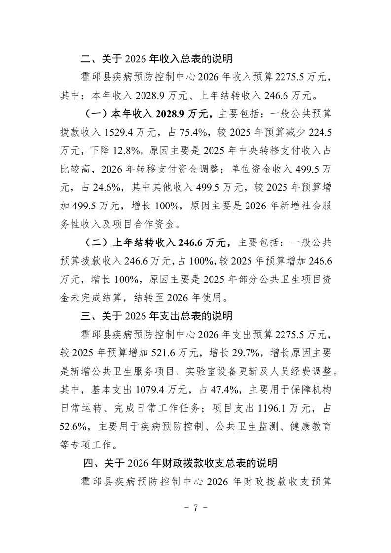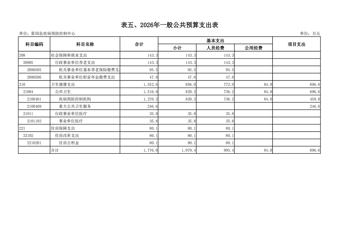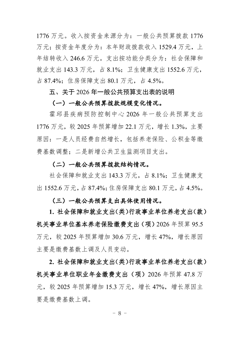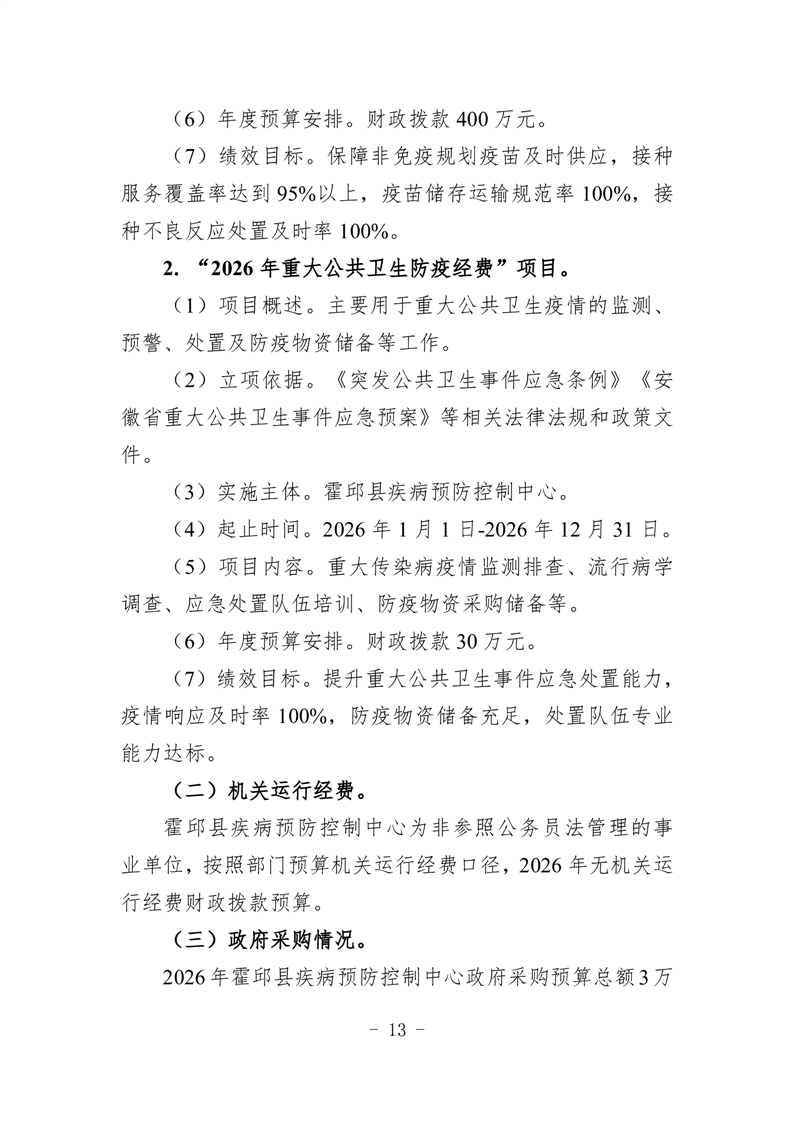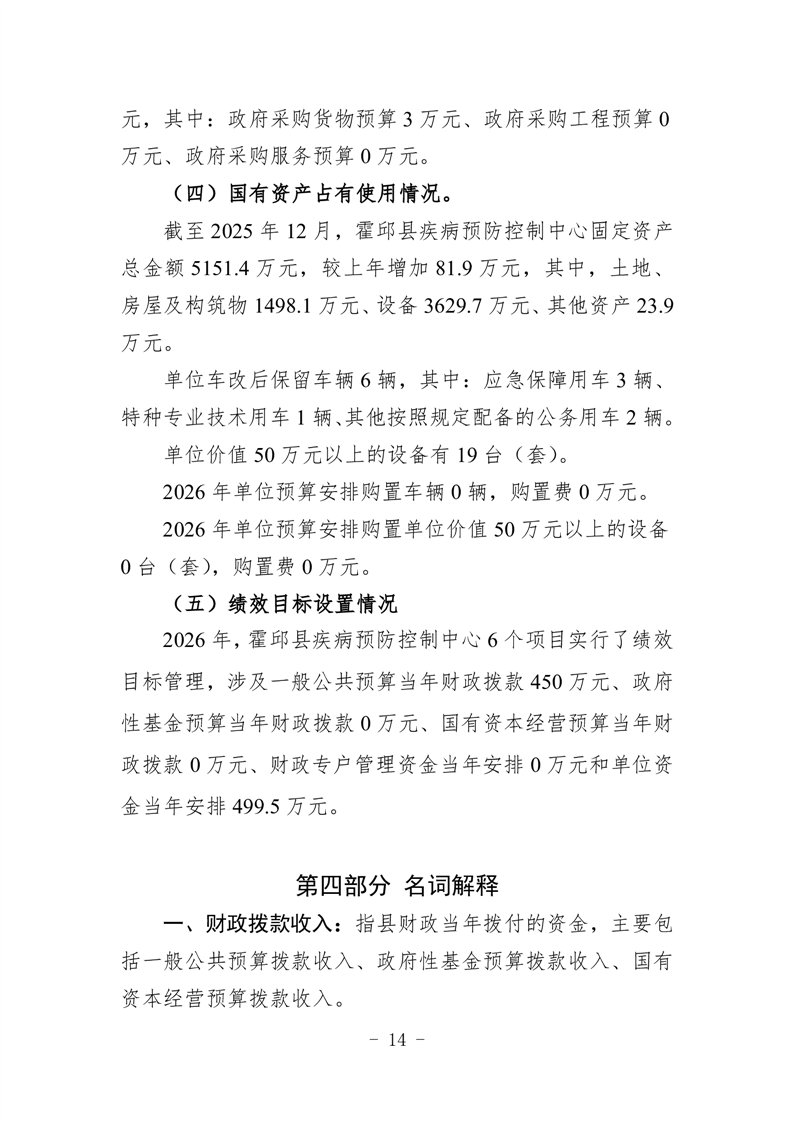 霍邱县疾病预防控制中心2026年单位预算公开