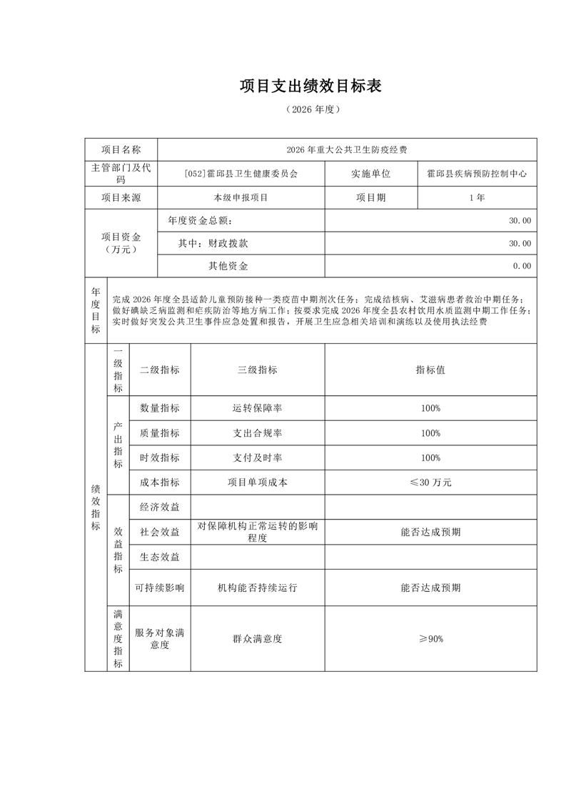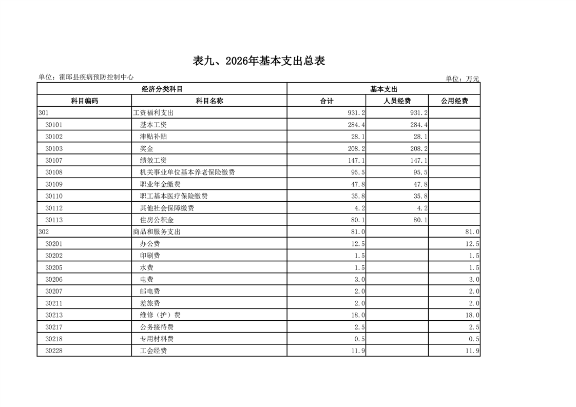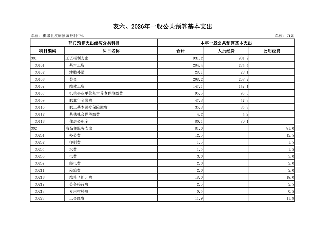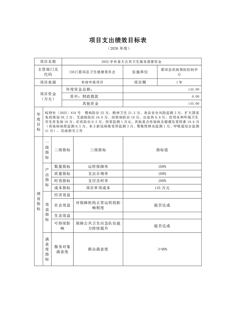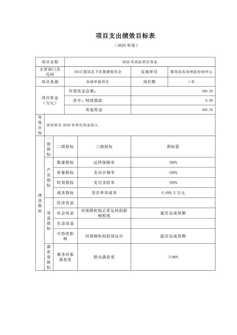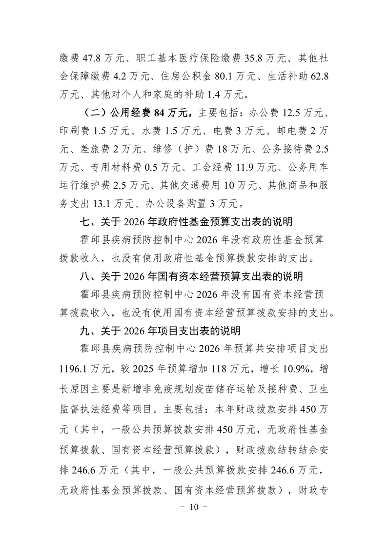 霍邱县疾病预防控制中心2026年单位预算公开