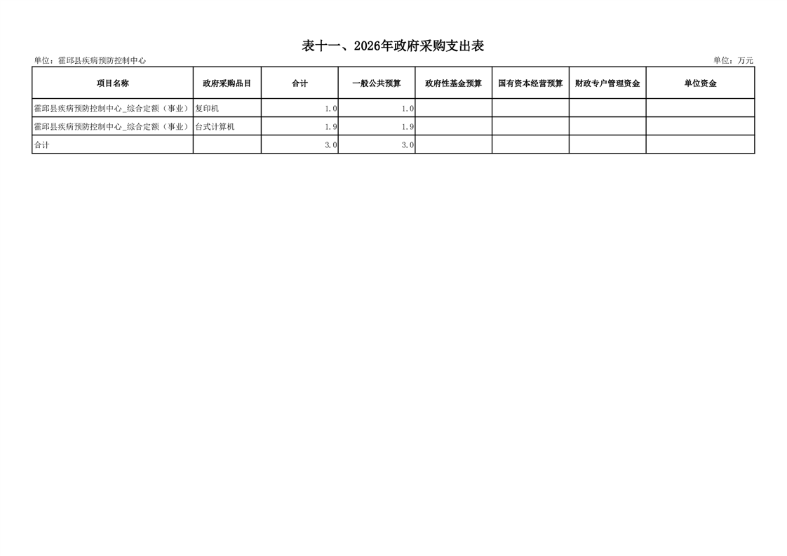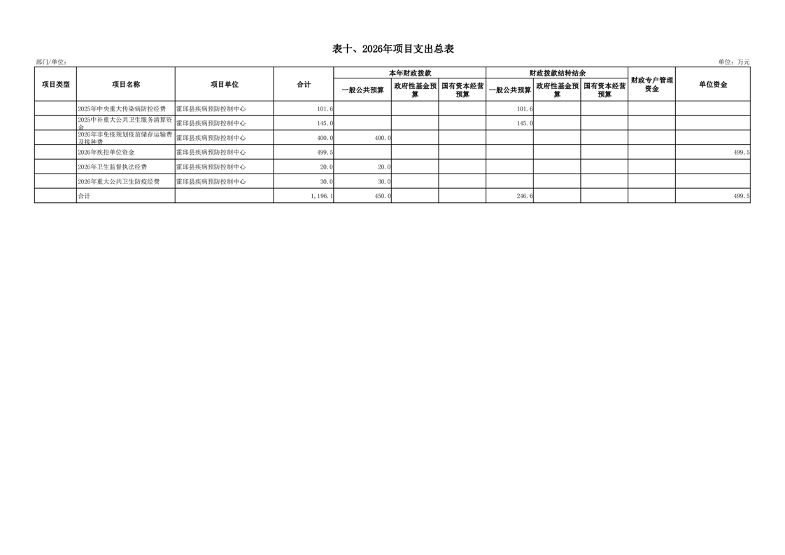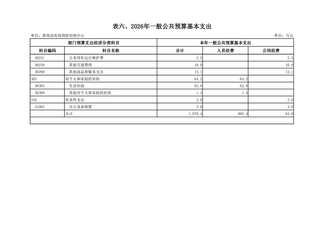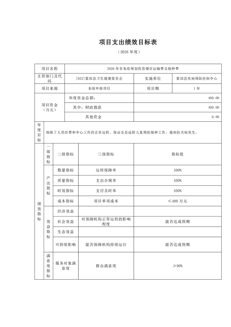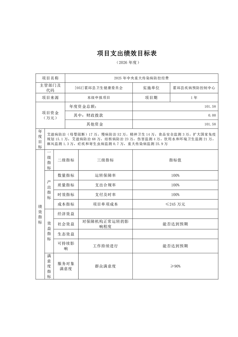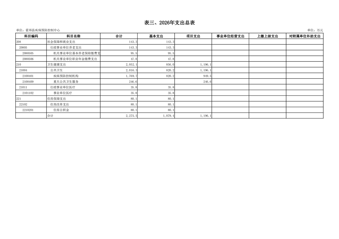 霍邱县疾病预防控制中心2026年单位预算公开