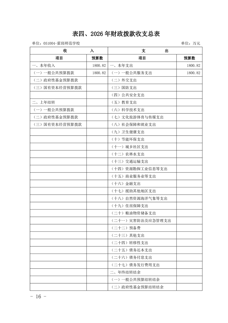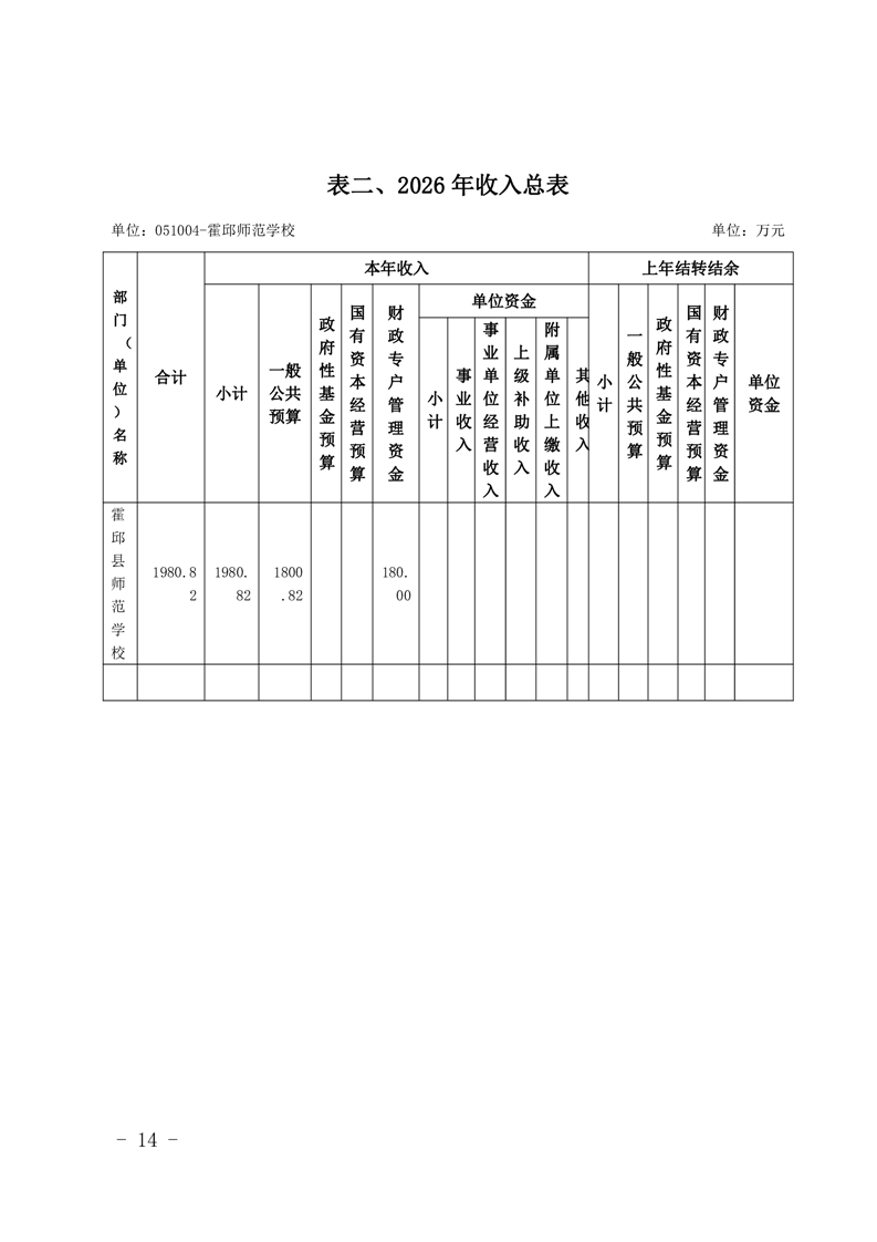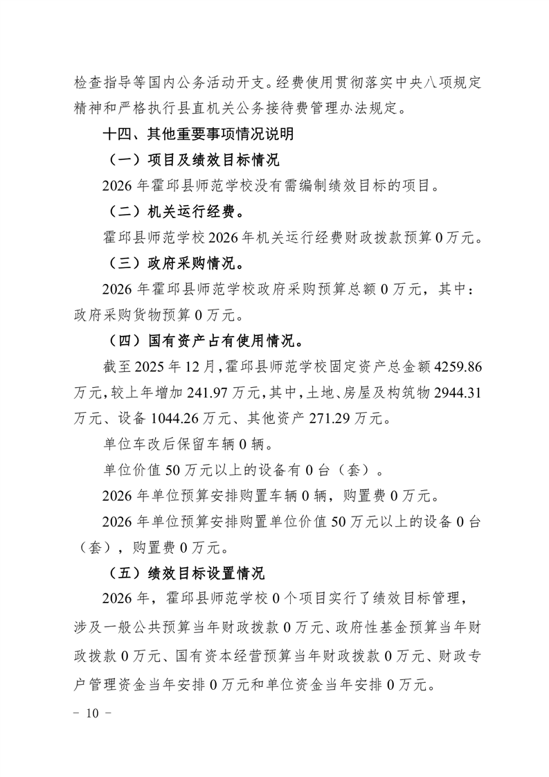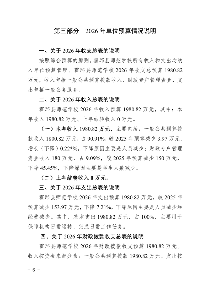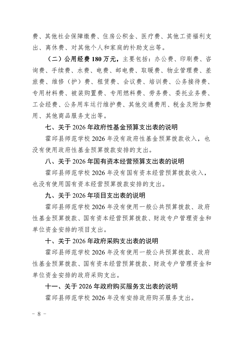 霍邱县师范学校2026年预算