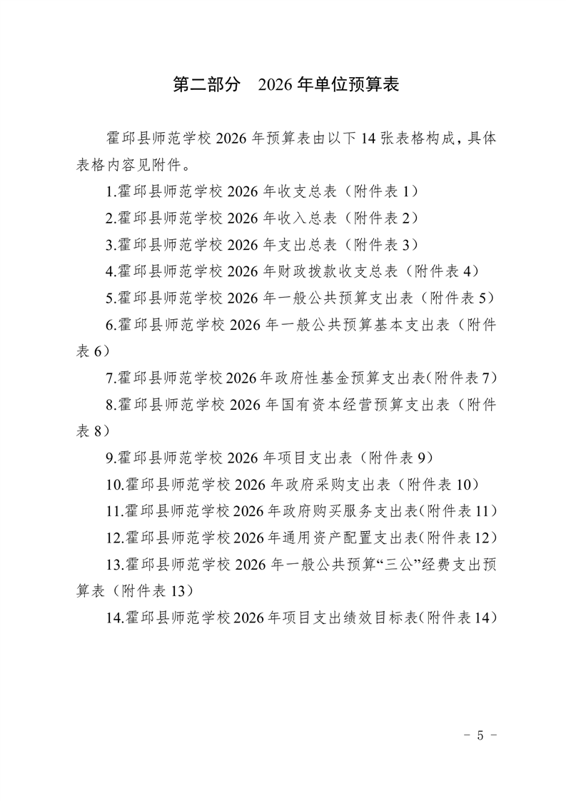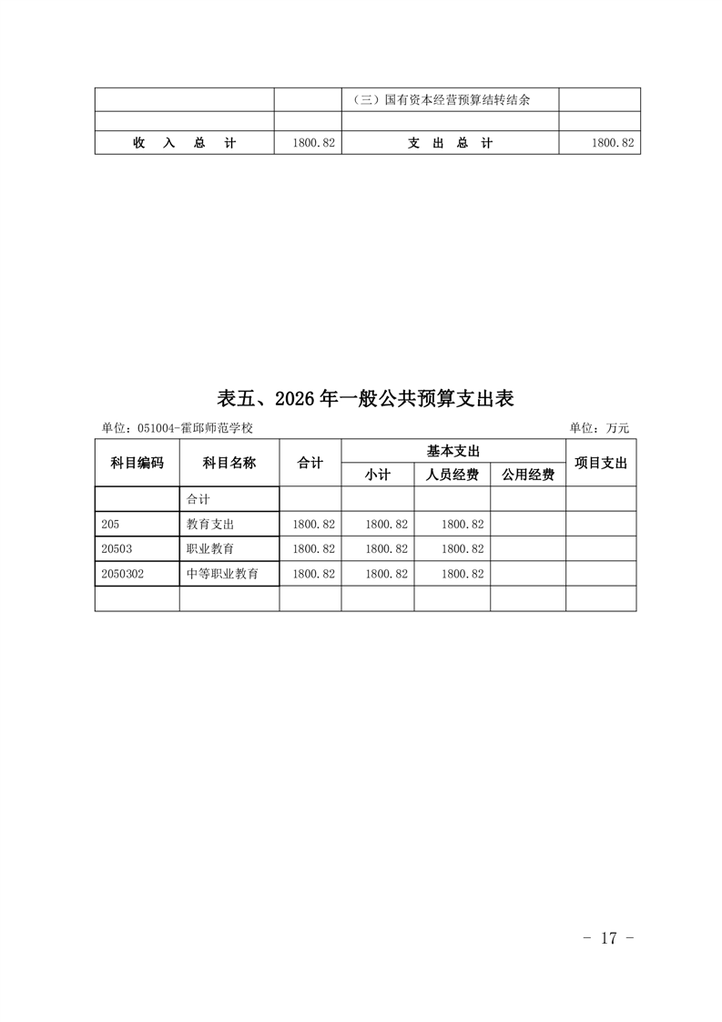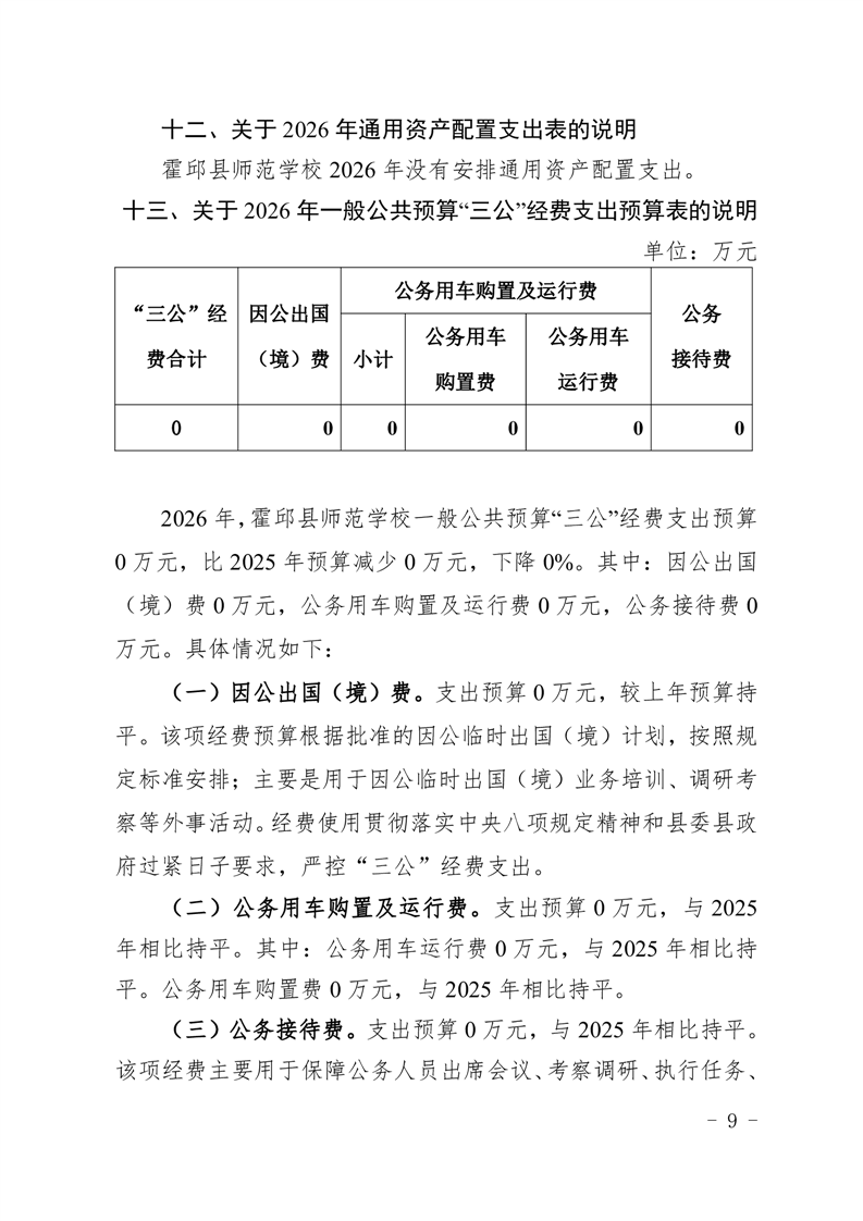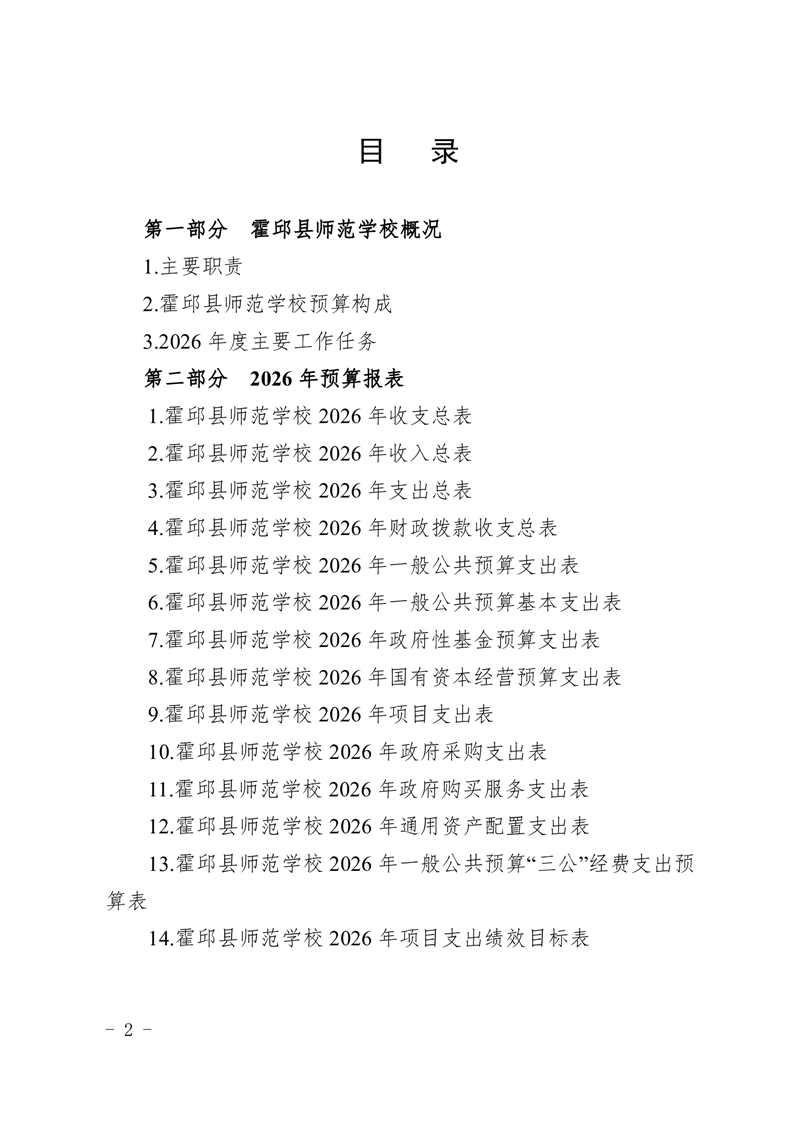 霍邱县师范学校2026年预算