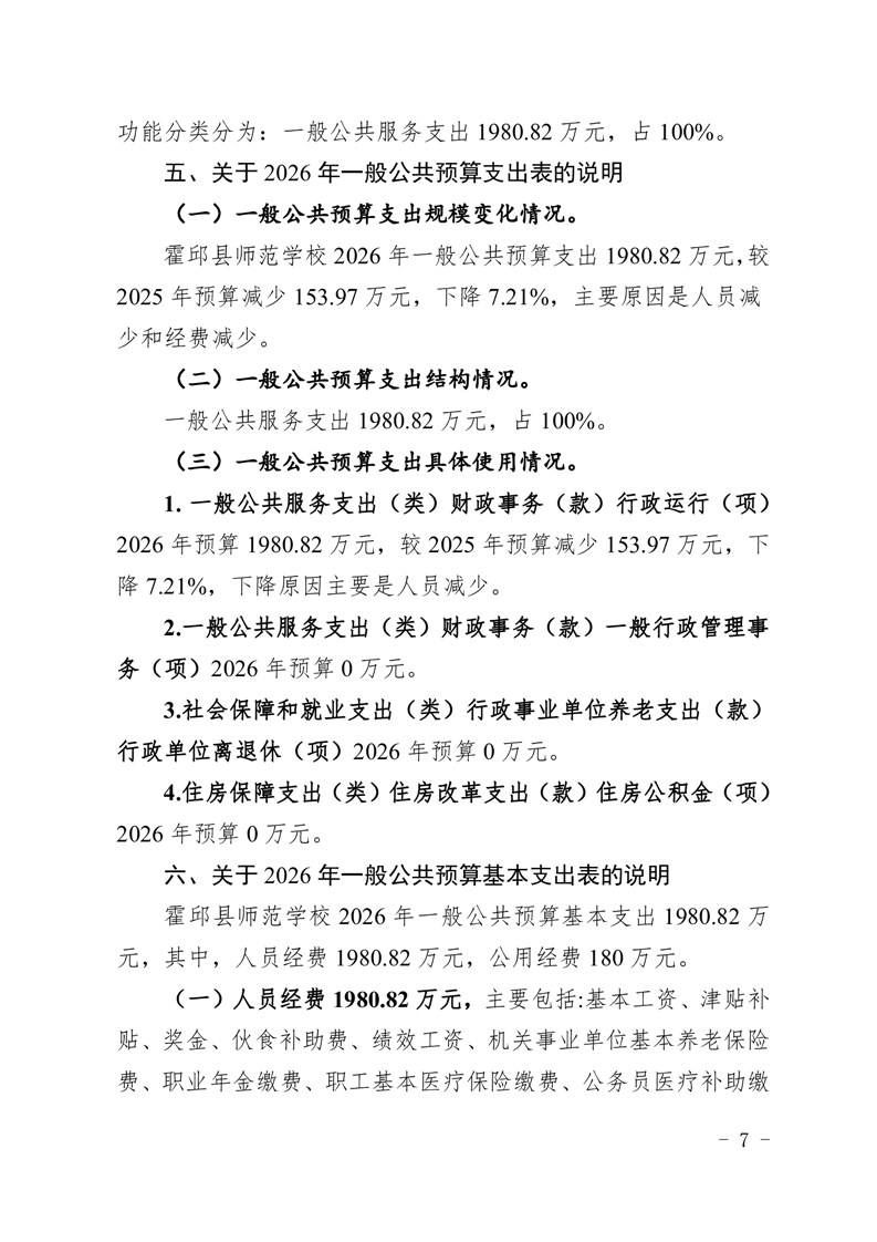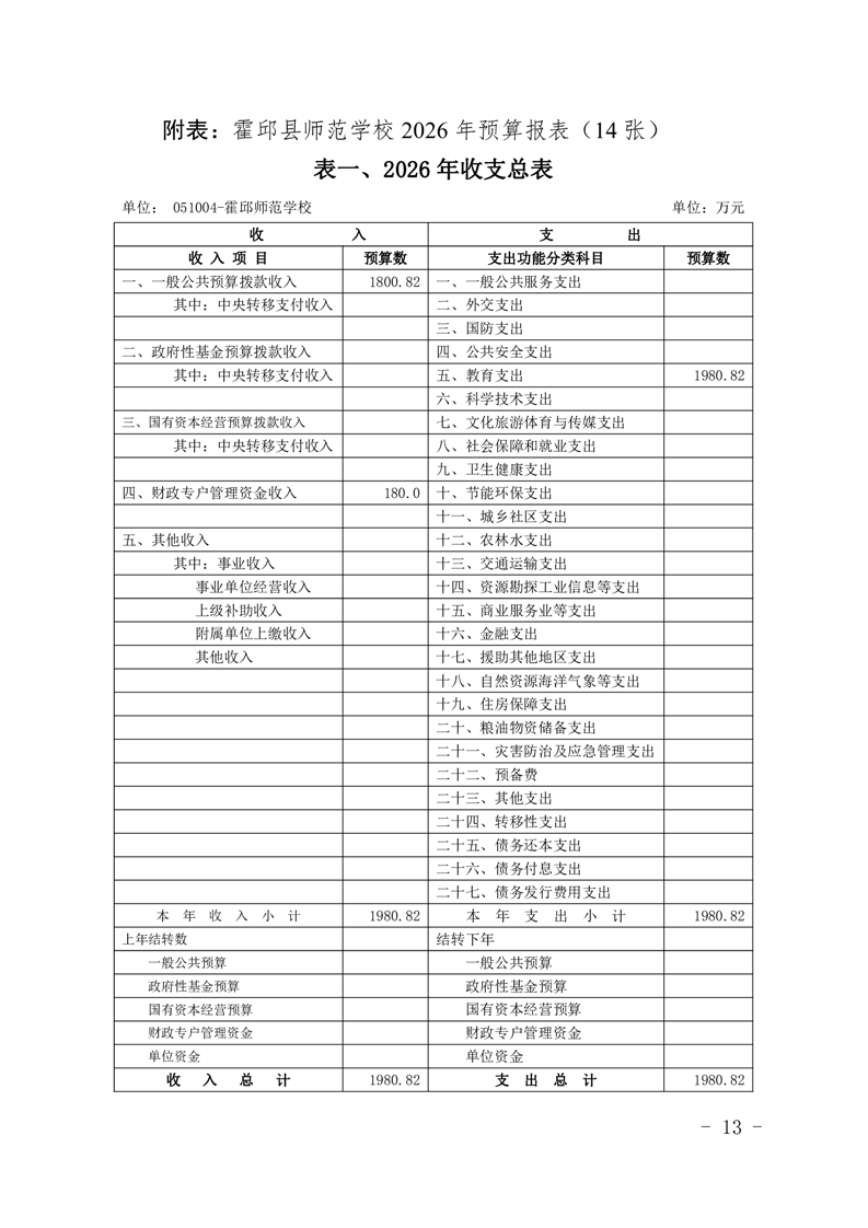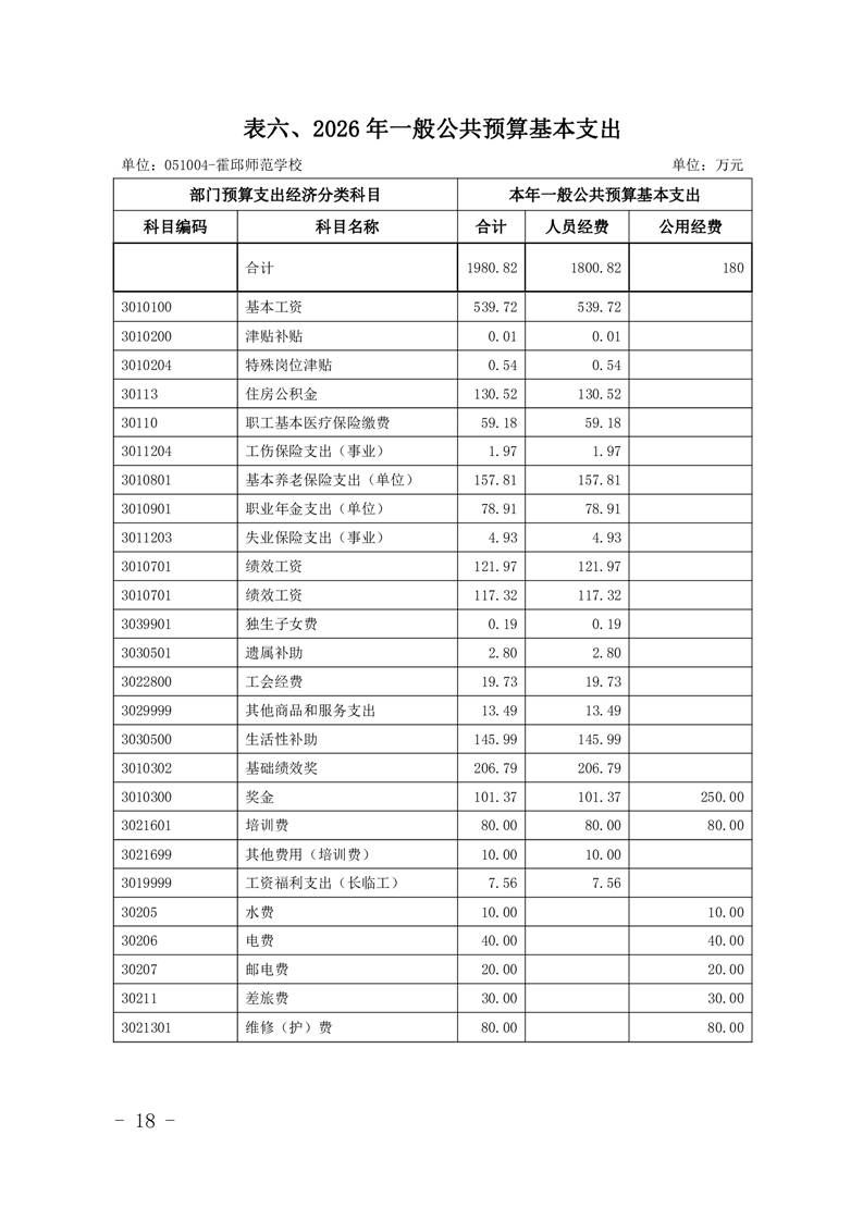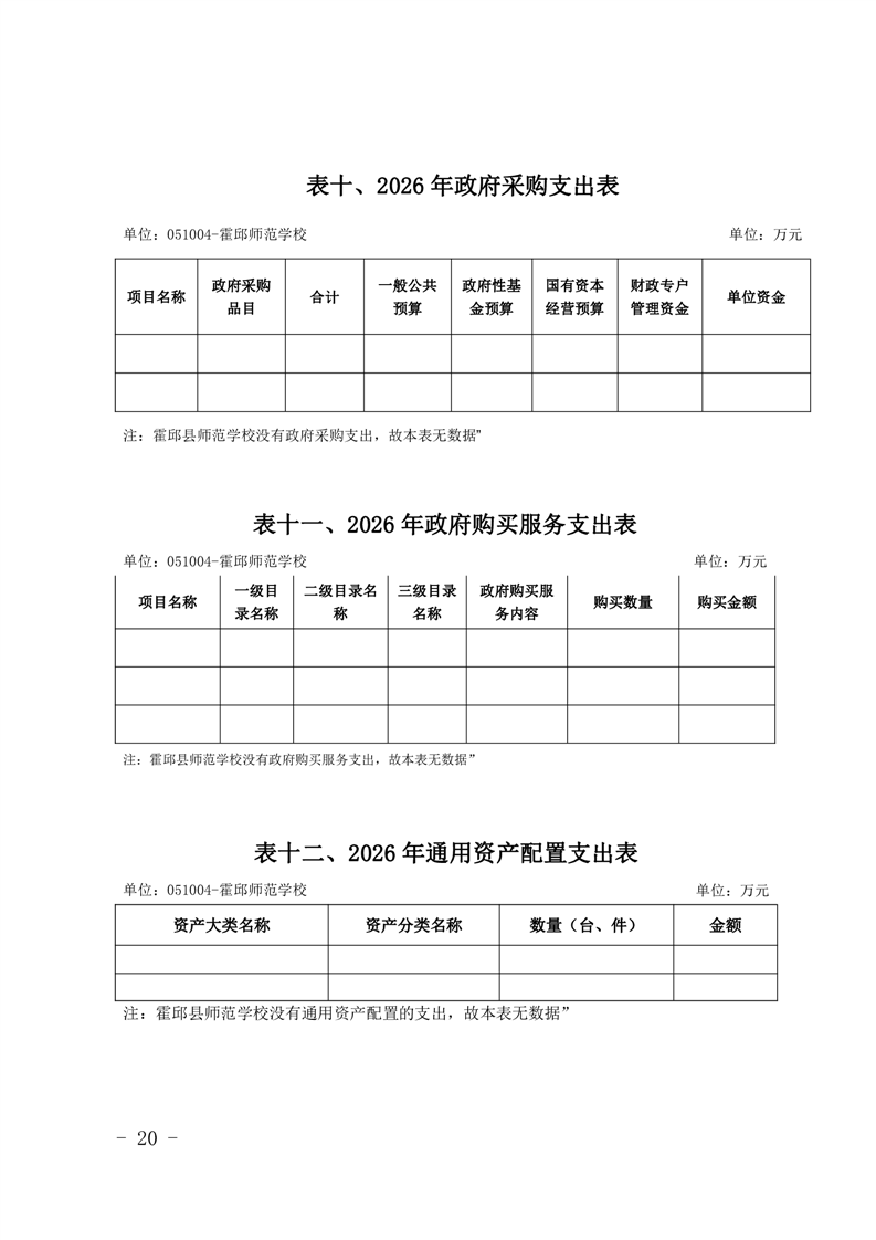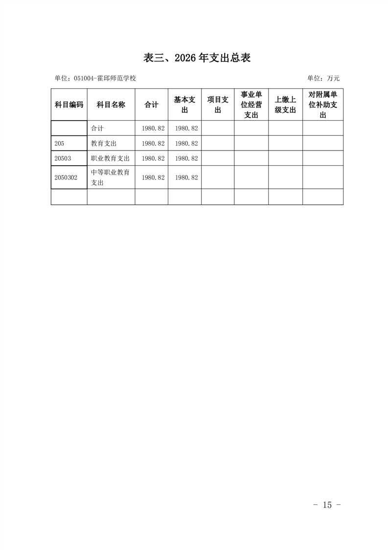 霍邱县师范学校2026年预算