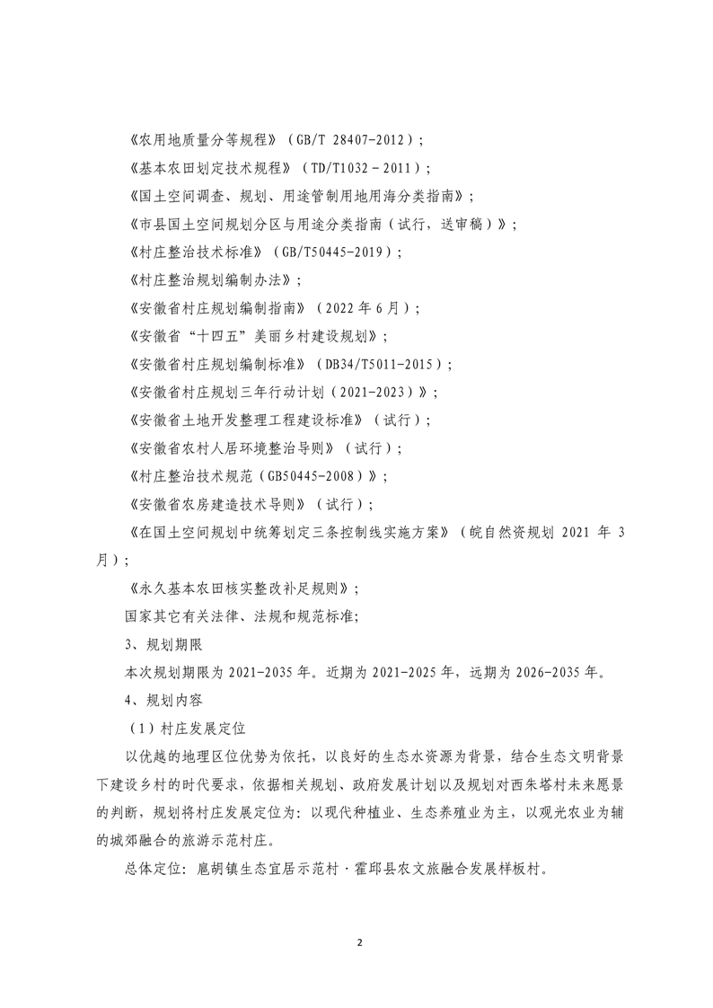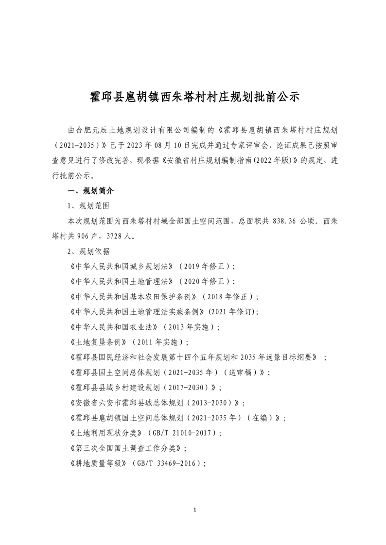 霍邱县扈胡镇西朱塔村村庄规划批前公示