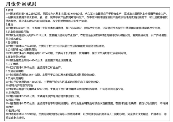 农村宅基地由27.27公顷调整为51.88公顷,增加24.61公顷;农村社区服务设施用地增加0.31公顷;公共管理与公共服务用地增加6.23公顷;商业用地由0.33公顷调整为4.48公顷,增加4.16公顷;留白用地增加0.56公顷。