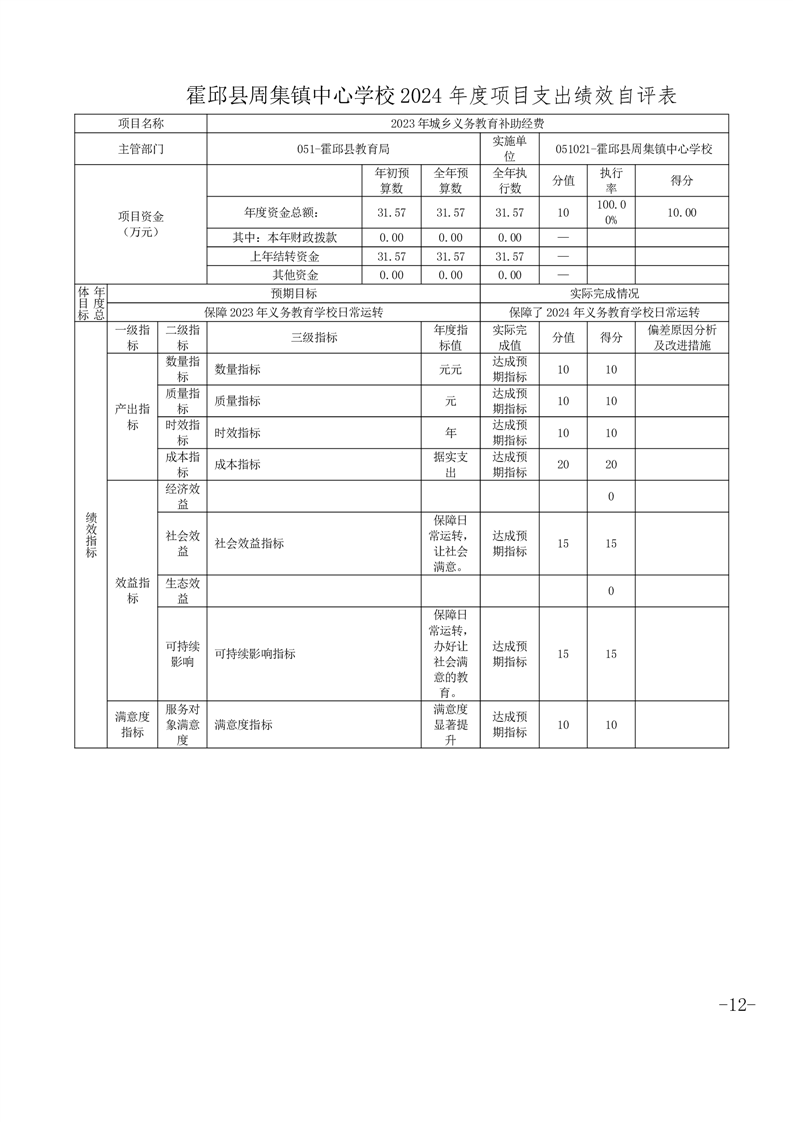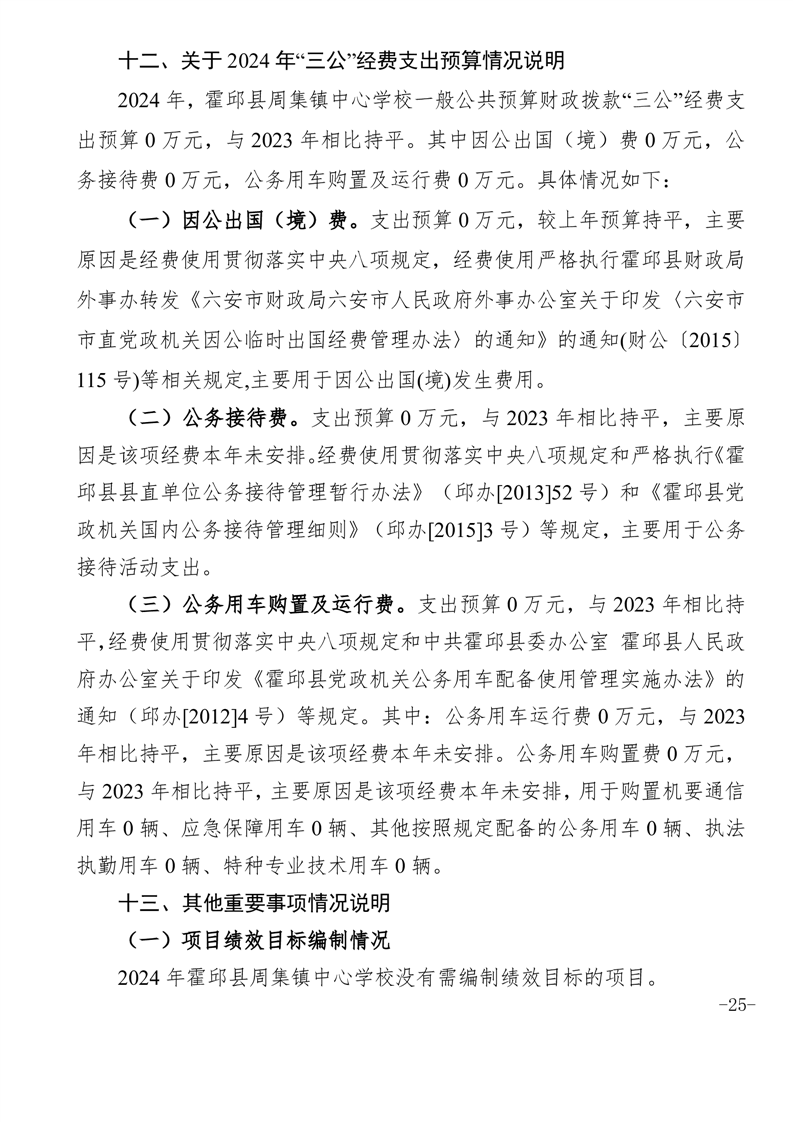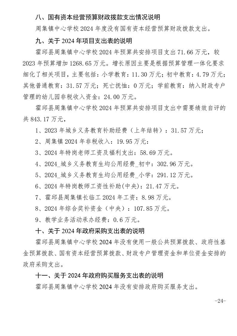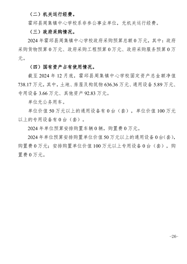 霍邱县周集镇中心学校 2024 年度单位决算