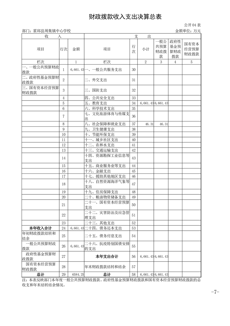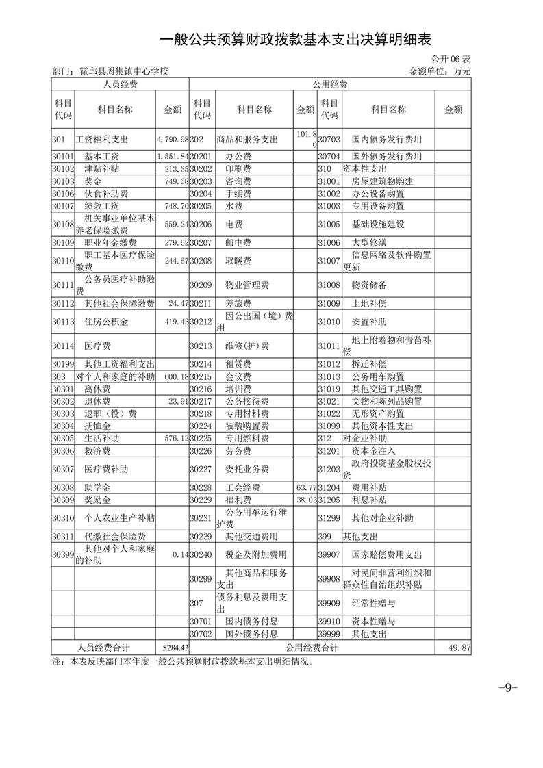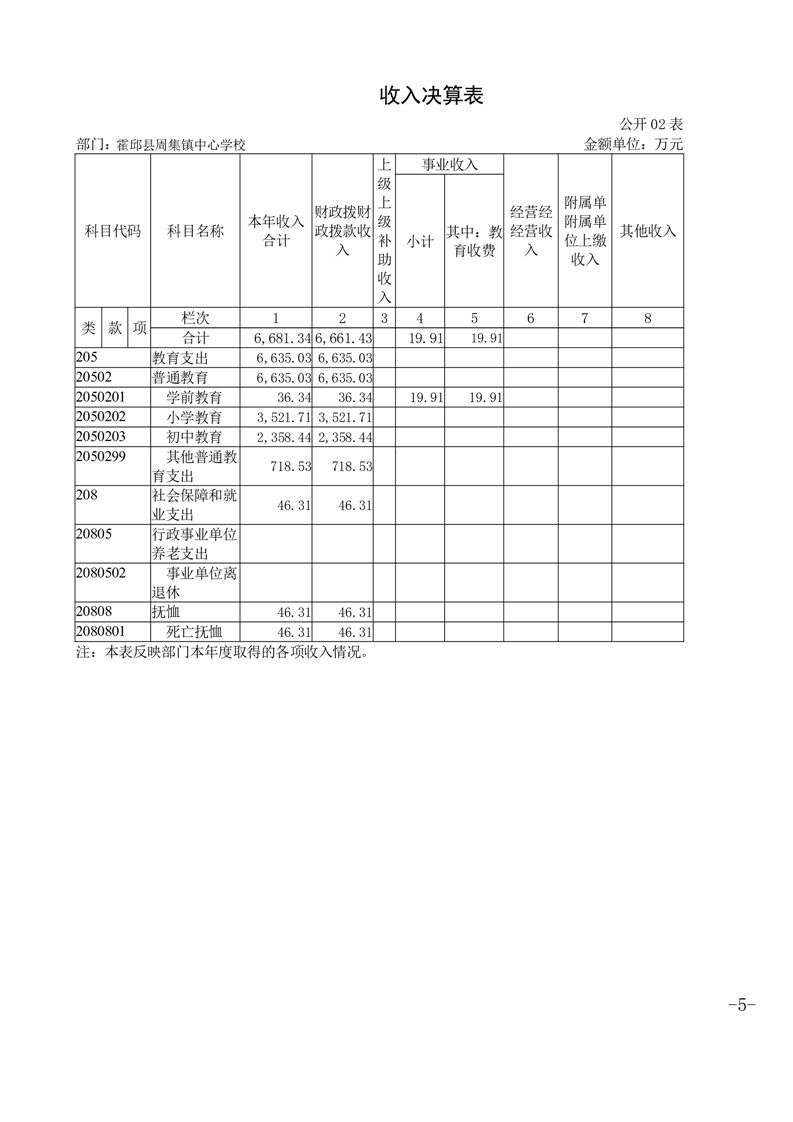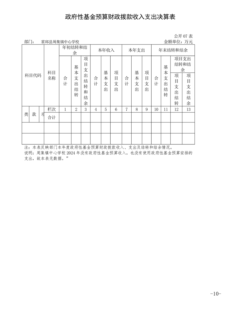 霍邱县周集镇中心学校 2024 年度单位决算