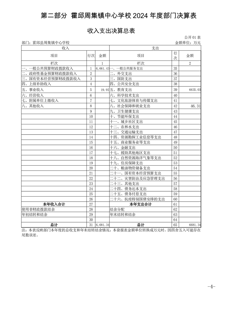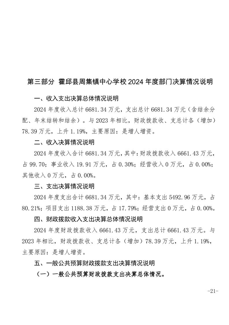 | 名 称: | 霍邱县周集镇中心学校 2024 年度单位决算 | ||