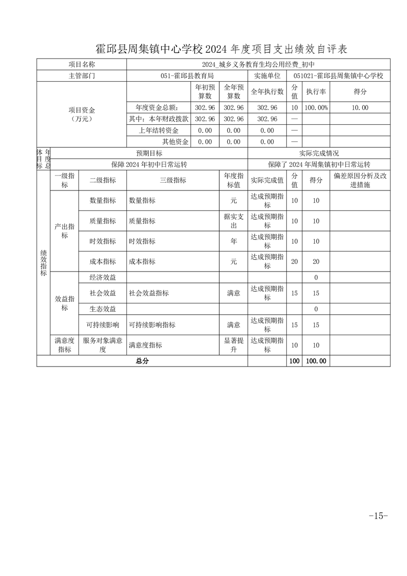 | 名 称: | 霍邱县周集镇中心学校 2024 年度单位决算 |