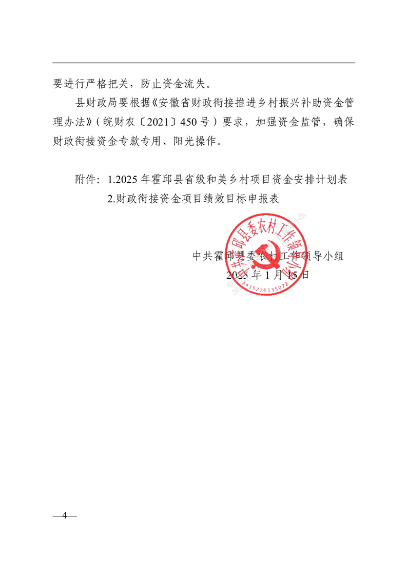 【计划安排情况】关于2025年霍邱县省级和美乡村项目资金安排的批复
