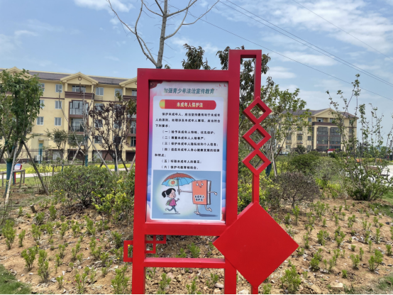 一、在长安小区公园新建:“乡村振兴 法治同行”法治文化公园。该公园配套设置“宪法亭”一个,全部以宪法为宣传内容;配套设置“乡村振兴亭”一个,全部以乡村振兴促进法为宣传内容;配套设置“青少年法治主题乐园”一个,全部以青少年相关法治为宣传内容;另外公园还植入了群众喜闻乐见的法治宣传标牌12个,宣传小品32个,渲染整个公园法治宣传氛围。