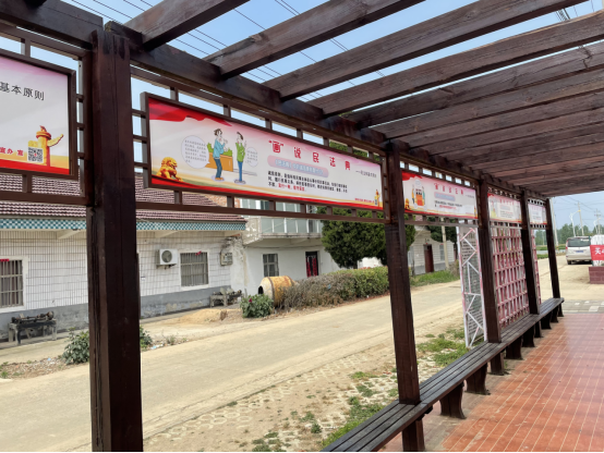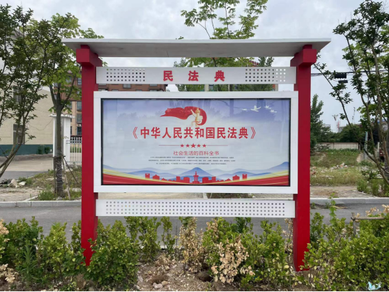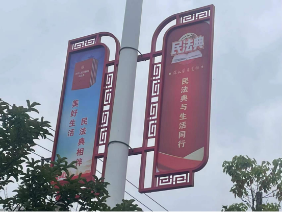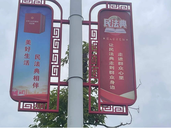 长集镇民法典宣传主题大街,整条大街配套安装十个灯箱,悬挂道旗34对,全部以民法典为宣传内容,专门以民法典为主题宣传大街,是霍邱县首创。在钱店村新建法治广场一个,配套宣传走廊一个。