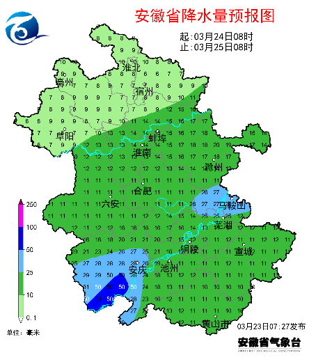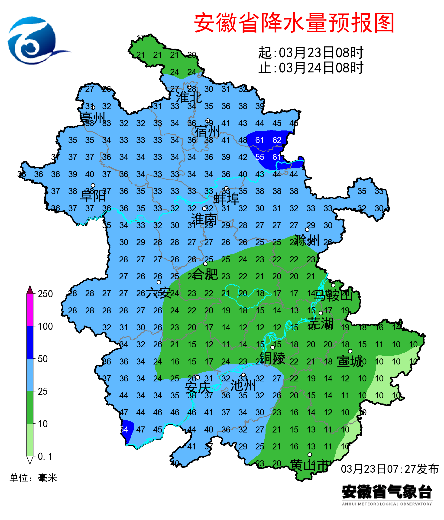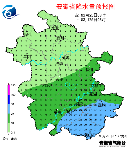 昨天六安、合肥、芜湖、马鞍山、安庆、黄山和阜阳等地出现弱降水,最大肥东撮镇6.1毫米。昨天白天最高气温:淮北地区东部及江南南部23~25℃,其他大部分地区25~28℃,局部达到29℃。此外,淮北地区北部、江淮之间南部和沿江江南有42市县出现6~7级大风,最大金寨18.6米/秒(8级)。