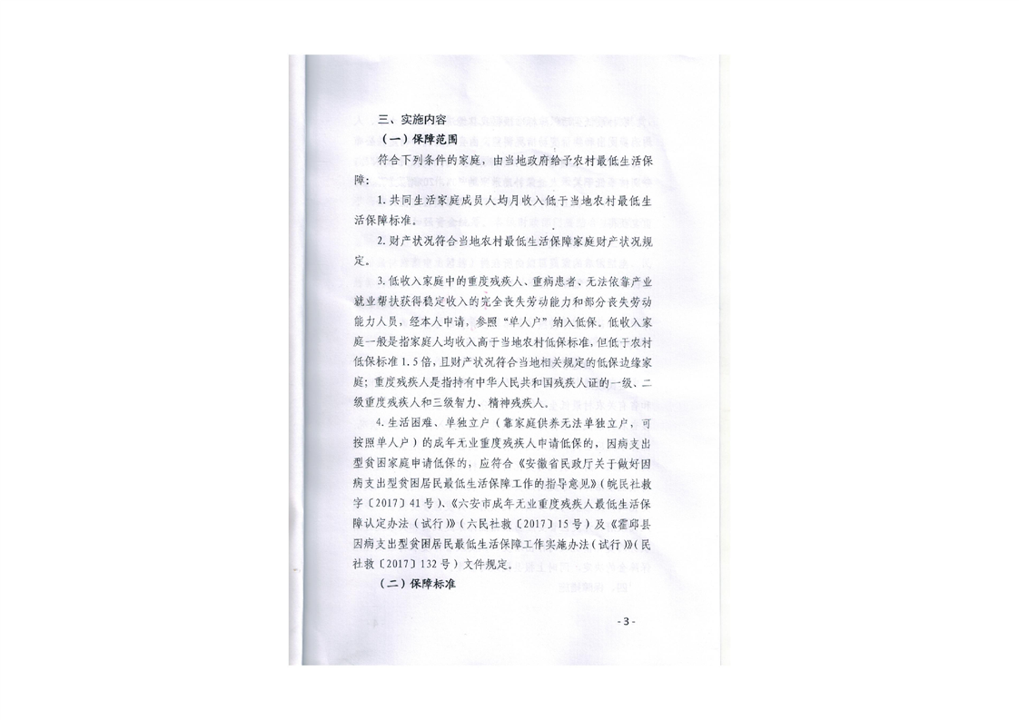 | 名 称: | 【县级政策】霍邱县临水镇转发:关于印发《霍邱县困难人员救助暨困难职工帮扶实施办法之农村居民最低生活保障》的通知 | ||