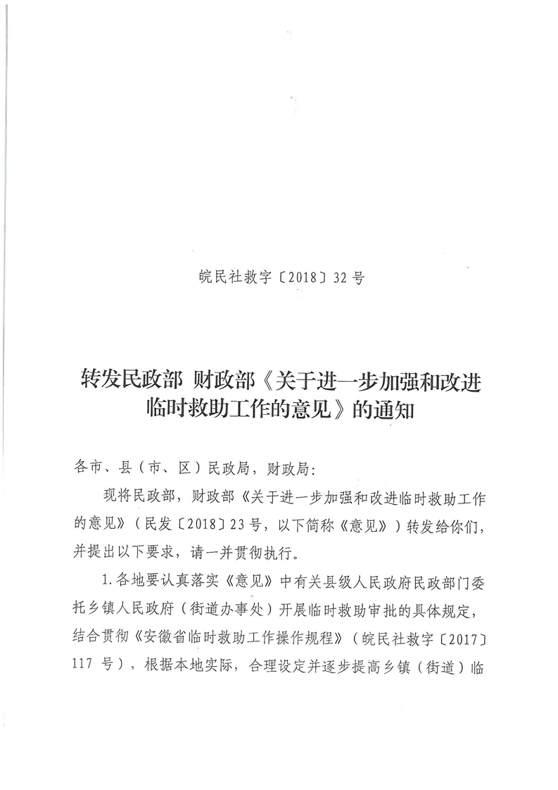 | 名 称: | 【政策文件】霍邱县临水镇转发:《民政部 财政部关于进一步加强和改进临时救助工作的意见》(民发〔2018〕23号) |