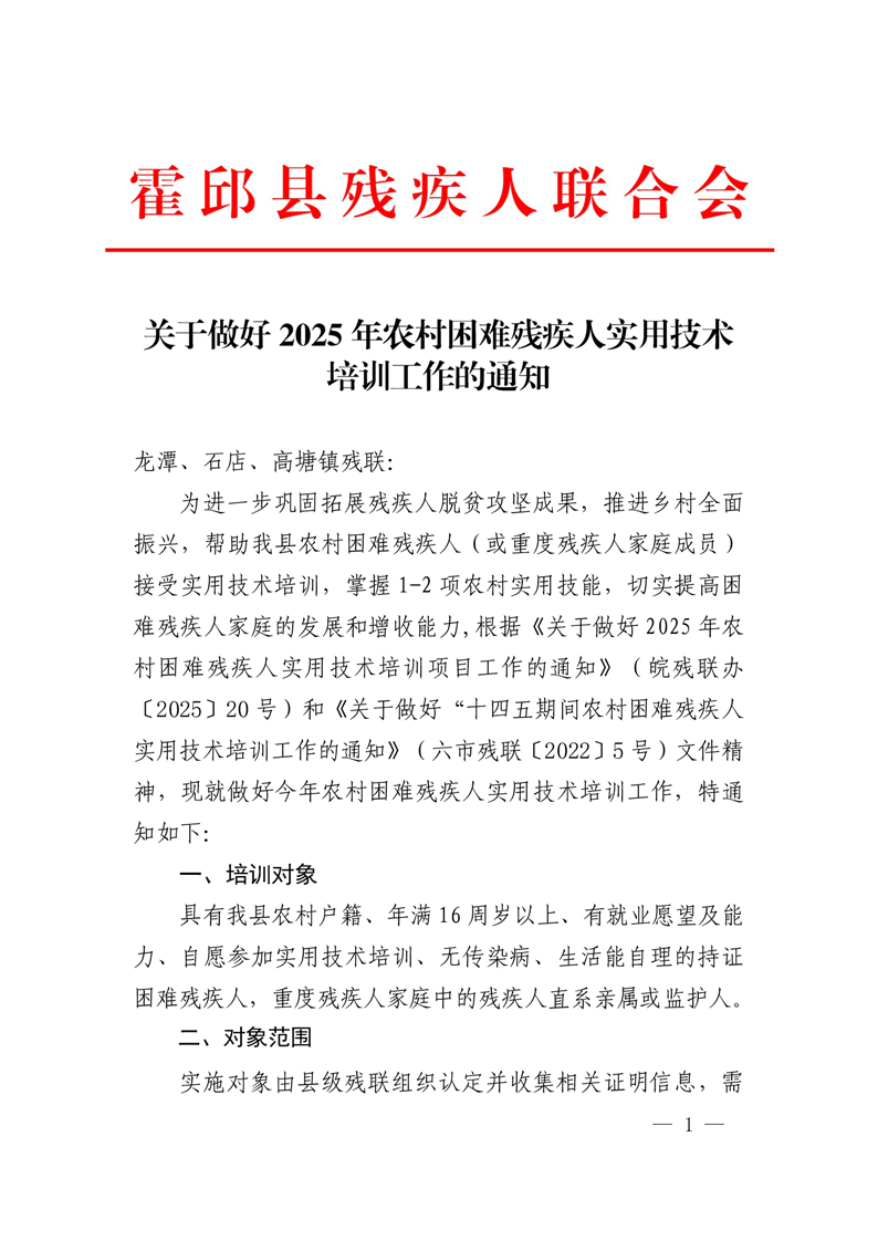 | 名 称: | 【残疾人培训】霍邱县临水镇转发关于做好2025年农村困难残疾人实用技术培训工作的通知 |