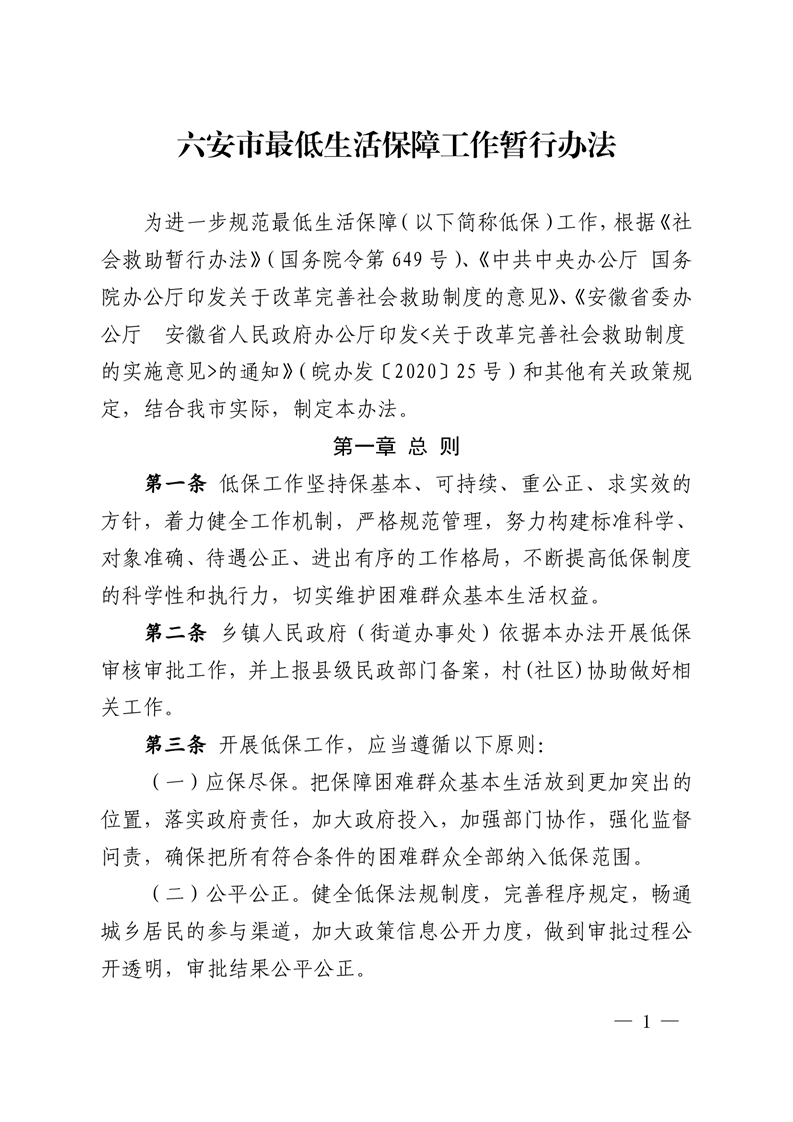 | 名 称: | 六安市最低生活保障工作暂行办法 | ||
