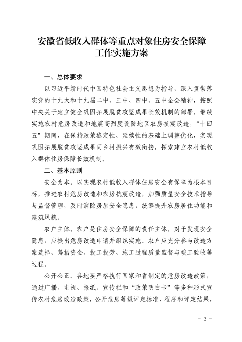 【上级政策】关于印发《安徽省低收入群体等重点对象住房安全保障工作实施方案》的通知 (有效)