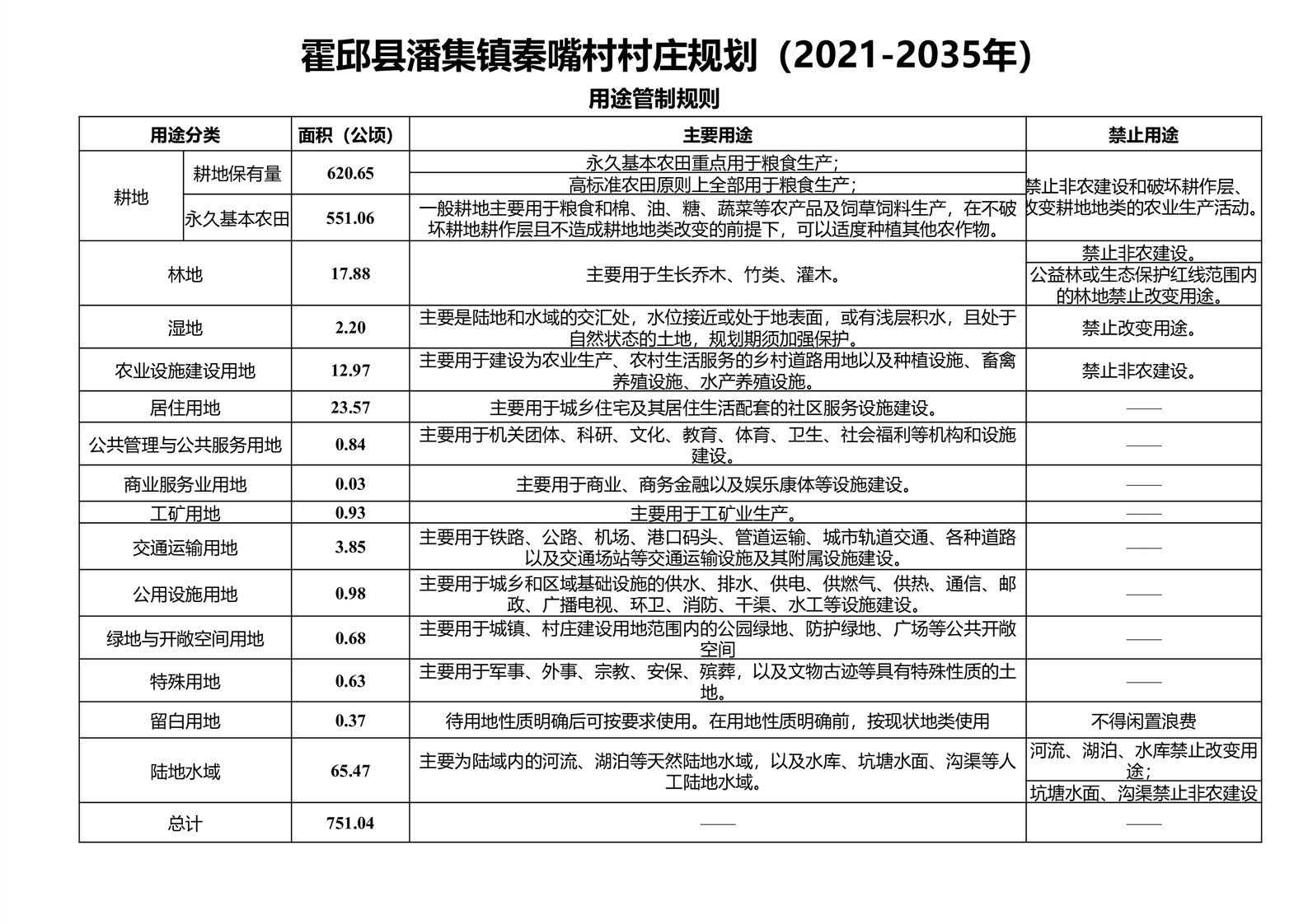 本次村庄规划范围为秦嘴村村域范围,规划范围内国土面积751.04公顷。
