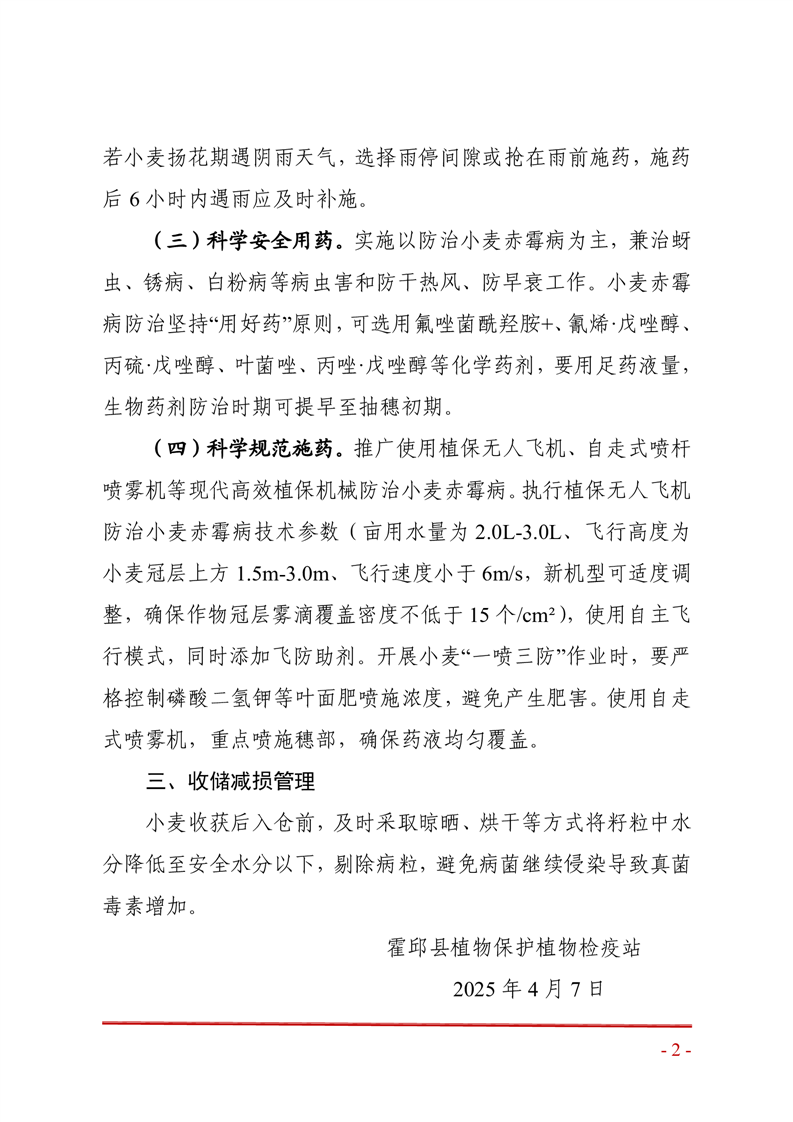 【农业防灾抗灾政策宣传】2025年霍邱县小麦赤霉病防治技术明白纸