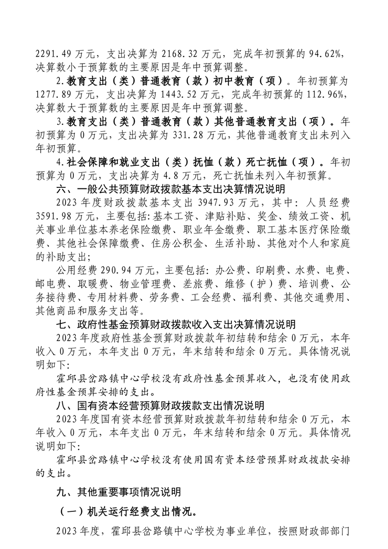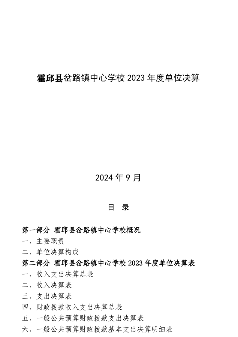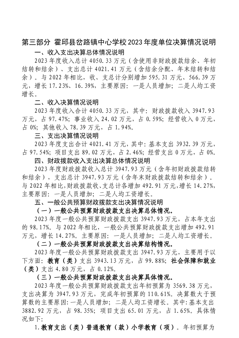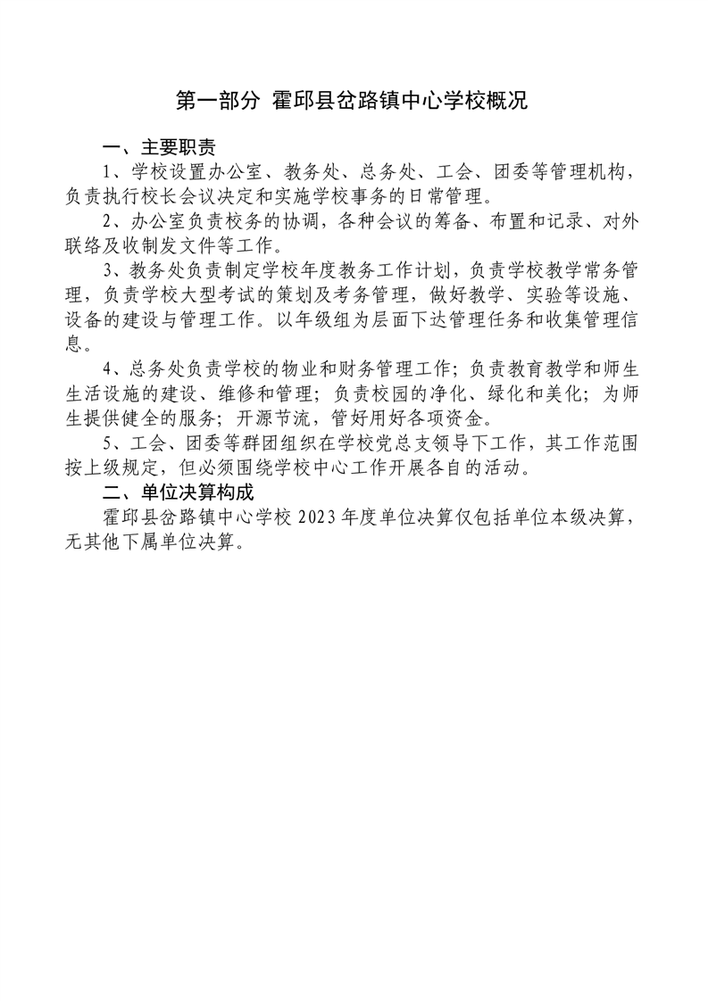 | 名 称: | 霍邱县岔路镇中心学校2023年经费决算情况 |