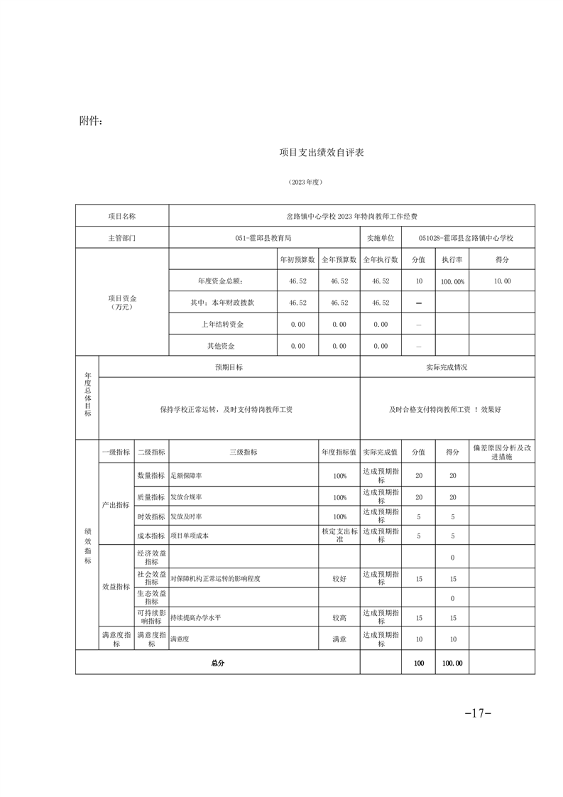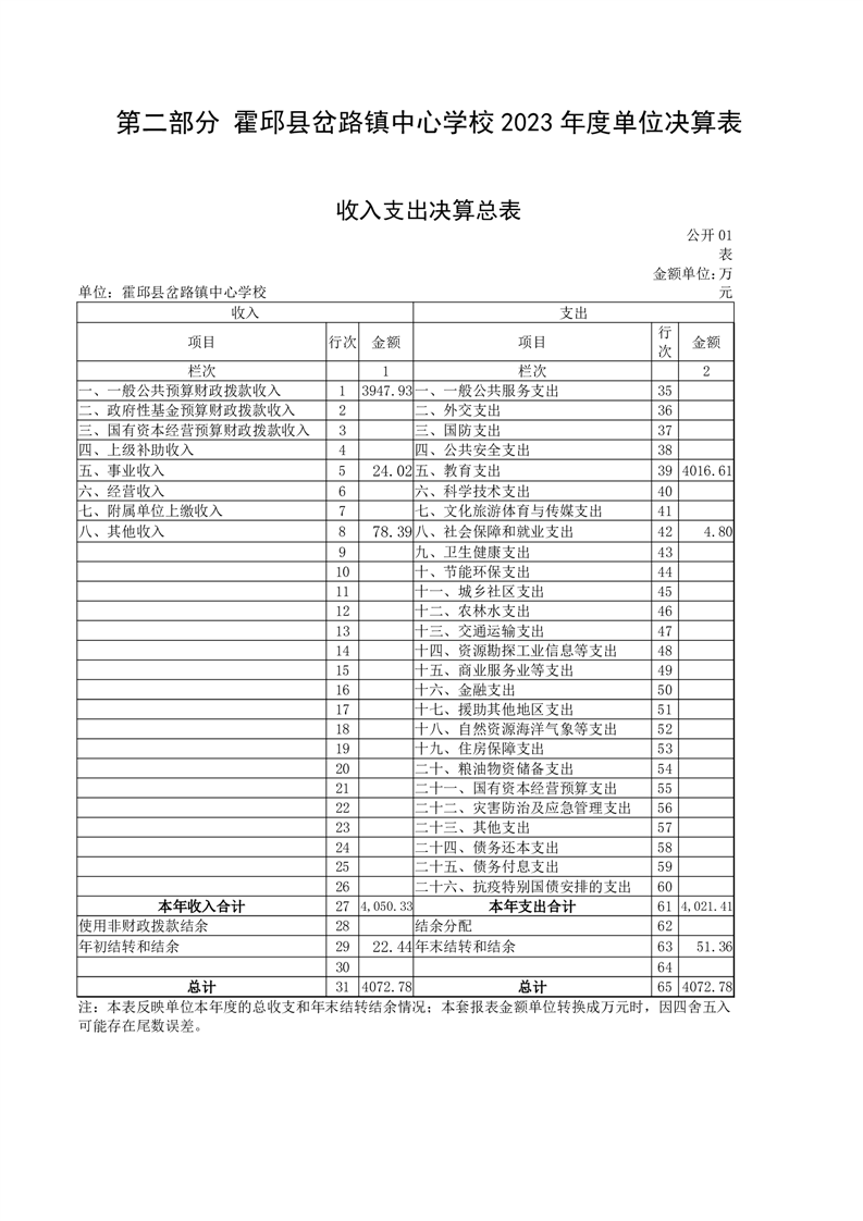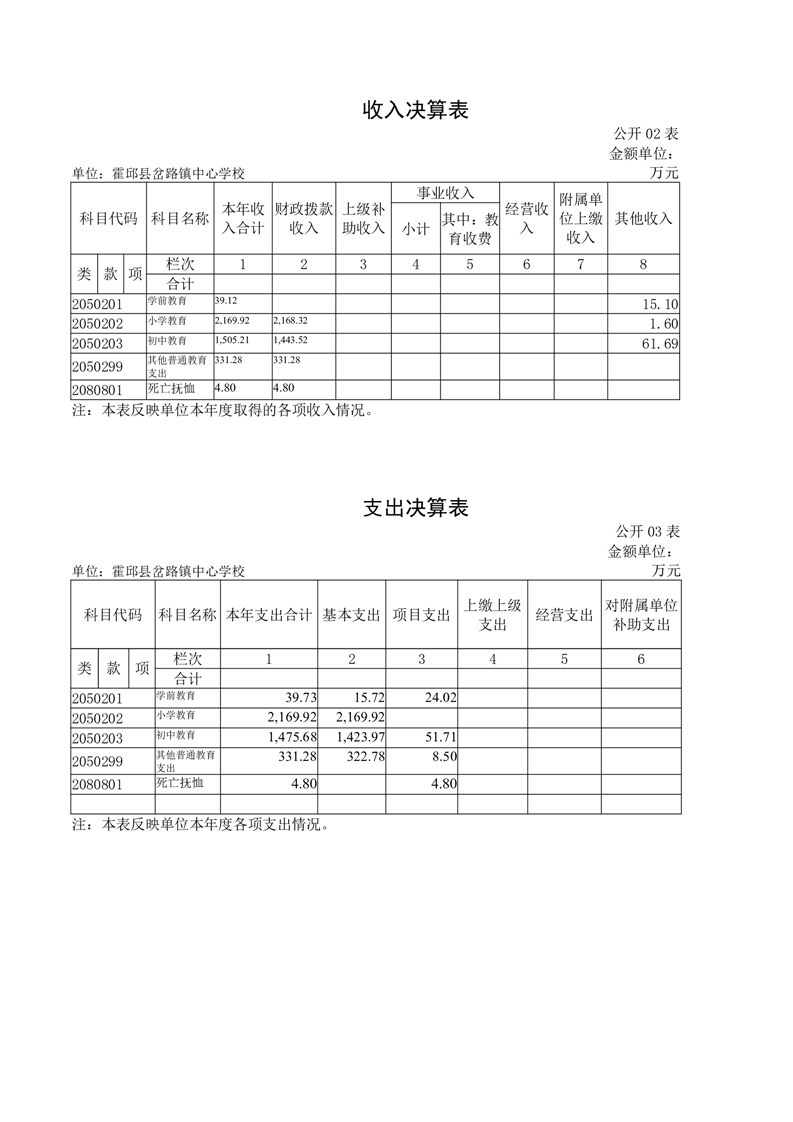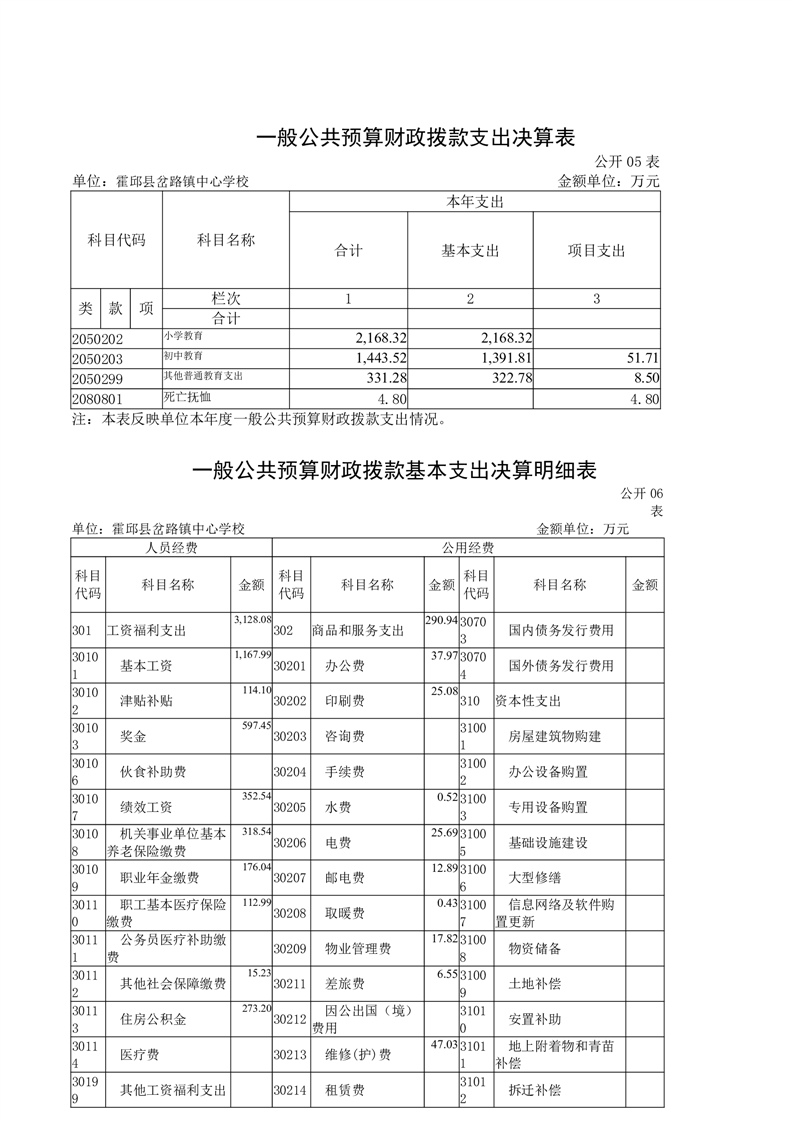 | 名 称: | 霍邱县岔路镇中心学校2023年经费决算情况 |