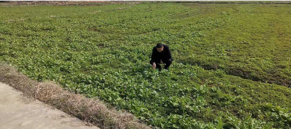 2024年3月11日,石店镇农技站站长王玉勇前往三连塘村田间地头,积极指导油菜种植大户生产工作。