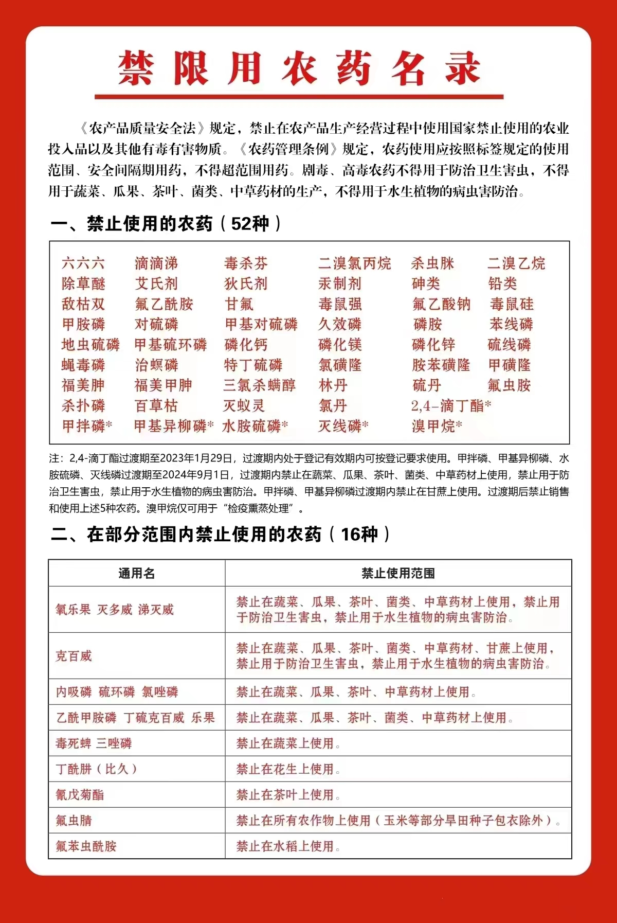 | 名 称: | 【农药监管】国家禁止使用和限制使用农药名录 | ||