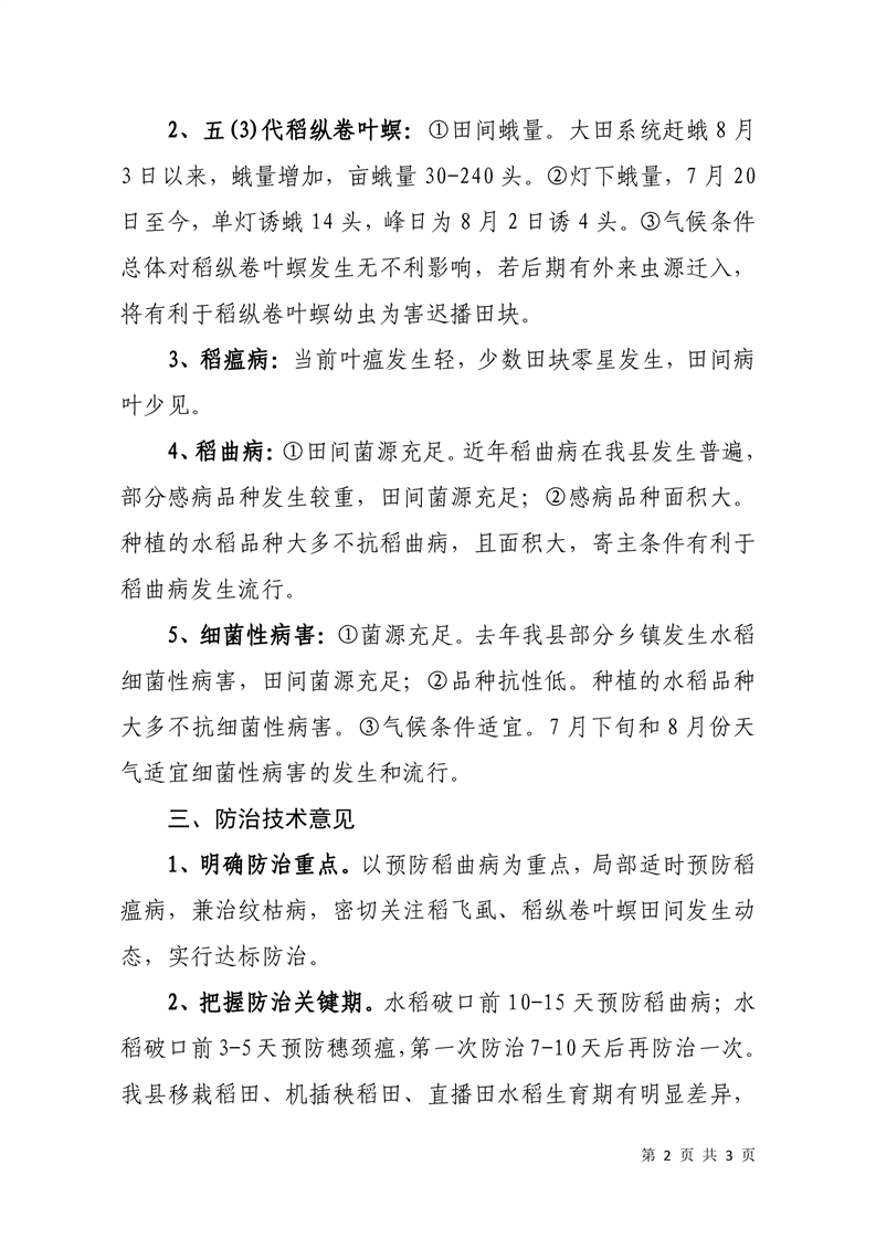 水稻病虫害发生趋势