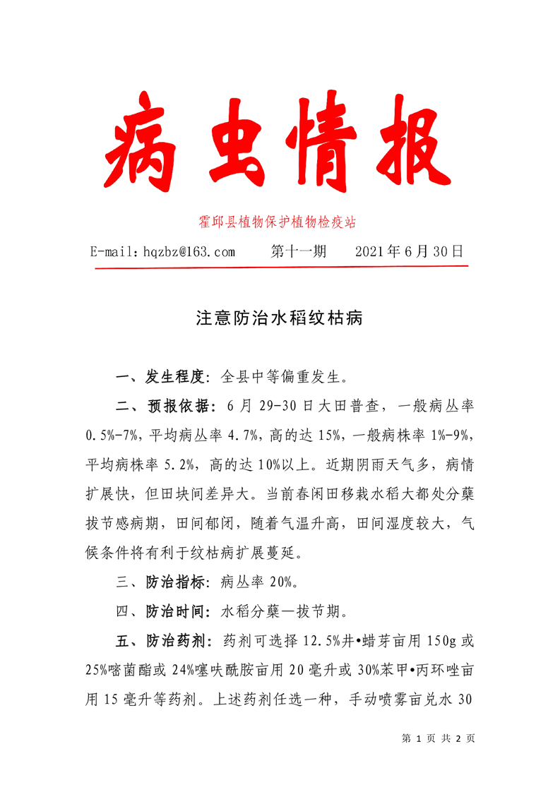| 名 称: | 水稻纹枯病预防 |