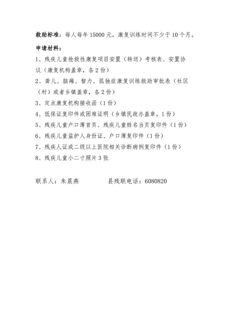 | 内容分类: | 视力、听力、言语、肢体、智力等残疾儿童和孤独症儿童康复训练 |