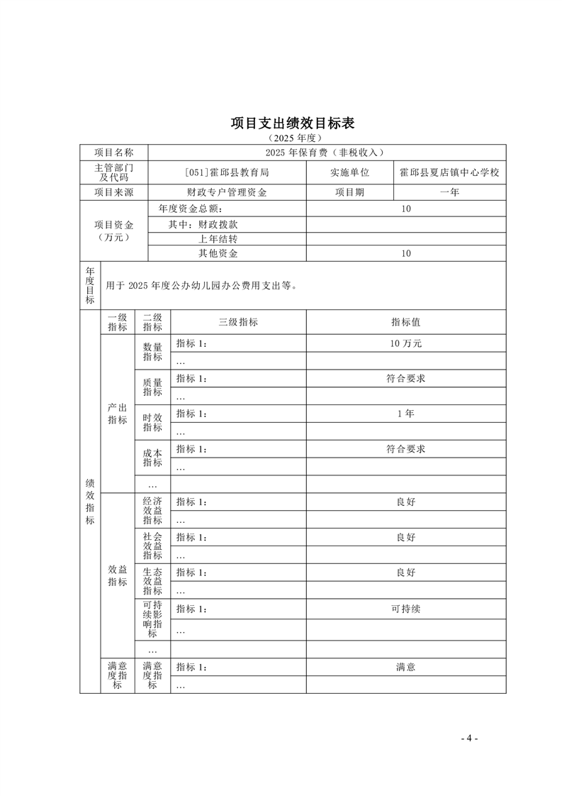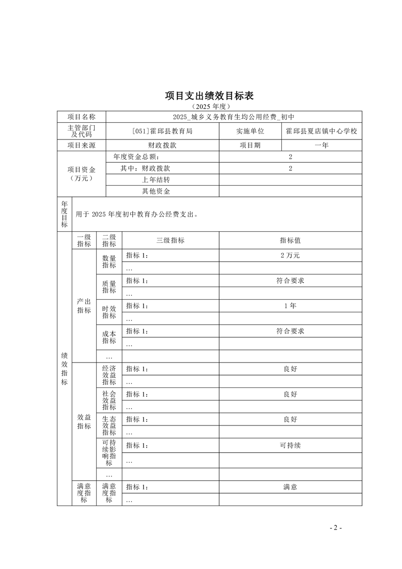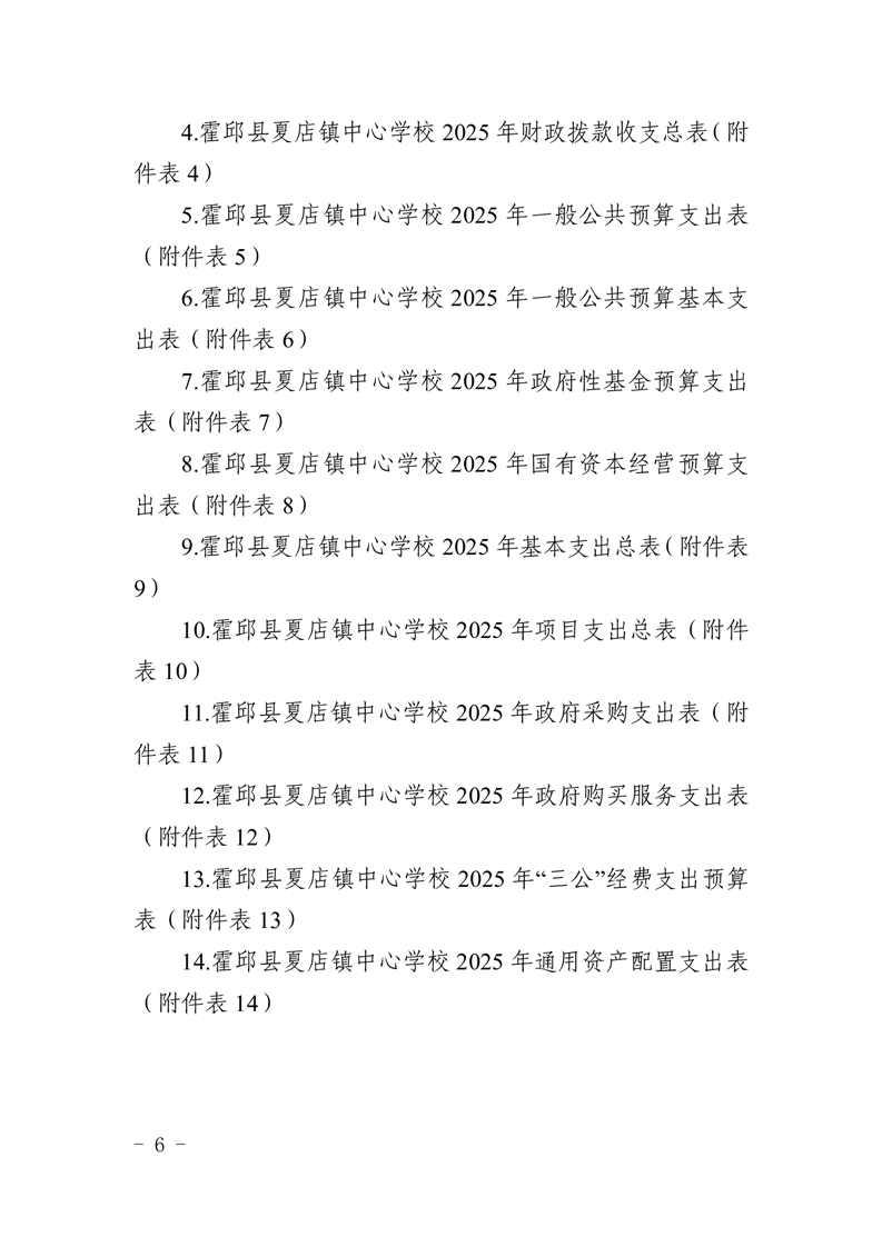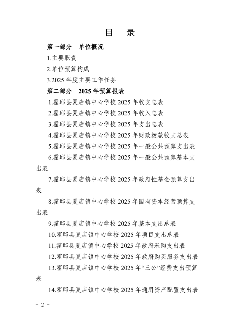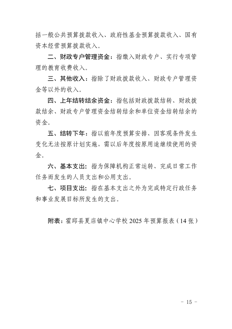 | 名 称: | 【年度经费预算】霍邱县夏店镇中心学校2025年度单位预算 |