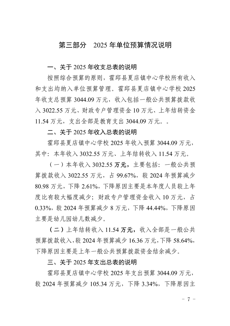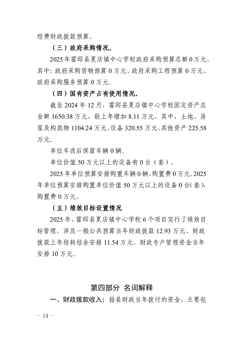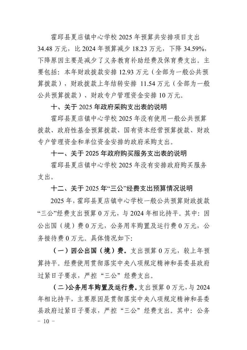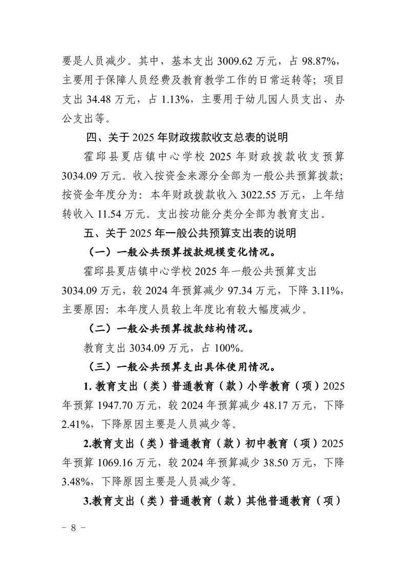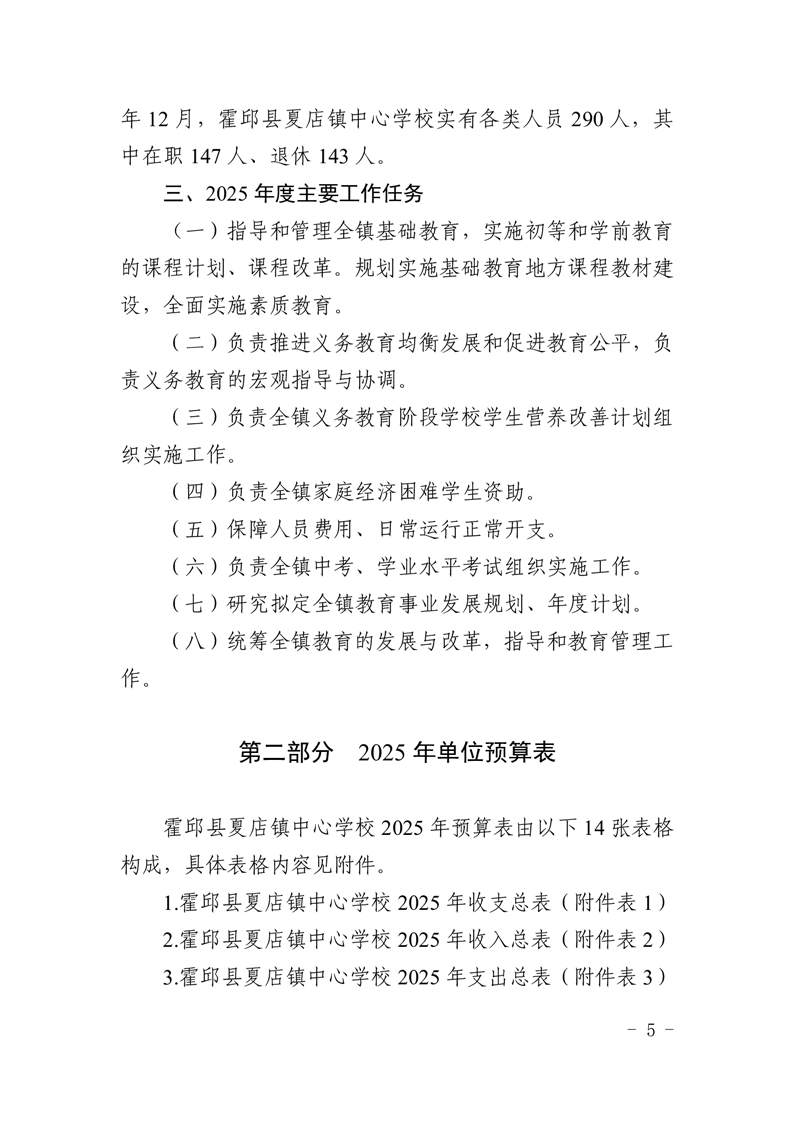 【年度经费预算】霍邱县夏店镇中心学校2025年度单位预算