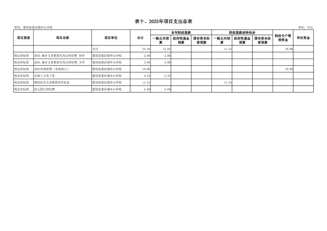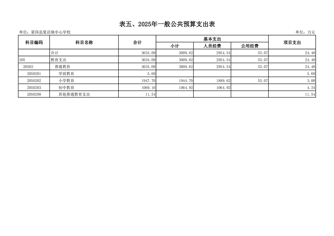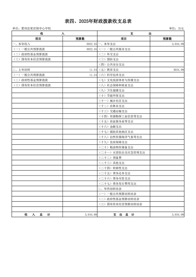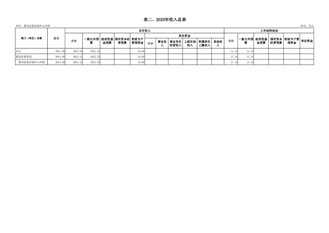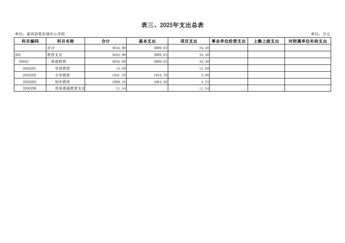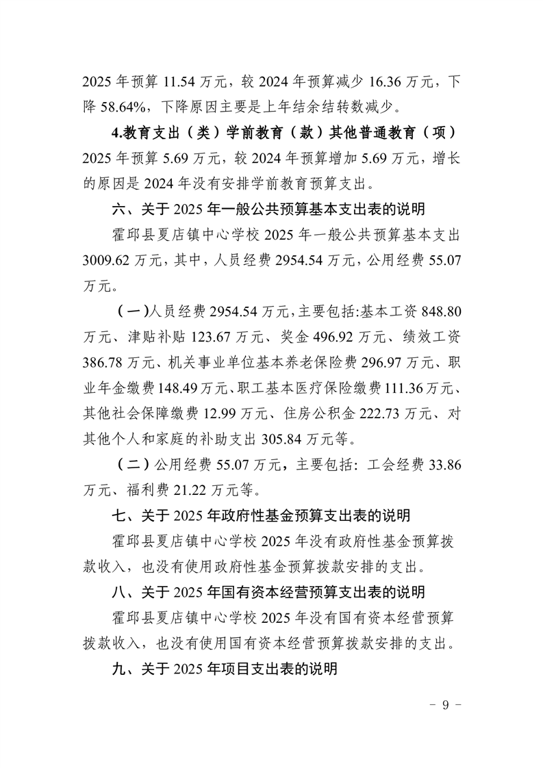 【年度经费预算】霍邱县夏店镇中心学校2025年度单位预算