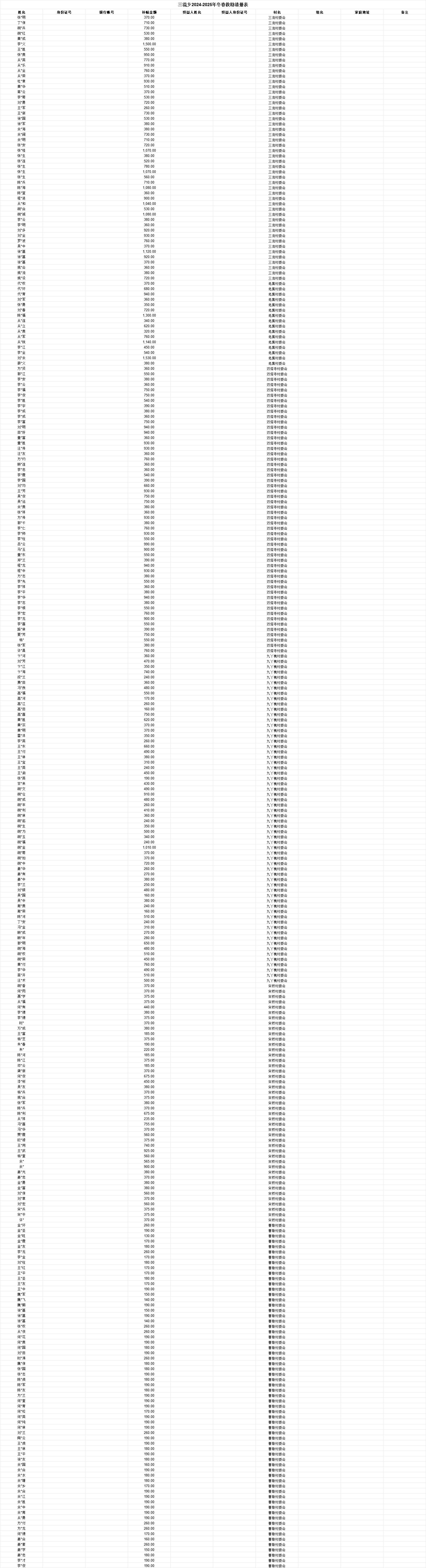 霍邱县三流乡2024-2025年冬春救助资金灾民救助补助资金清册表