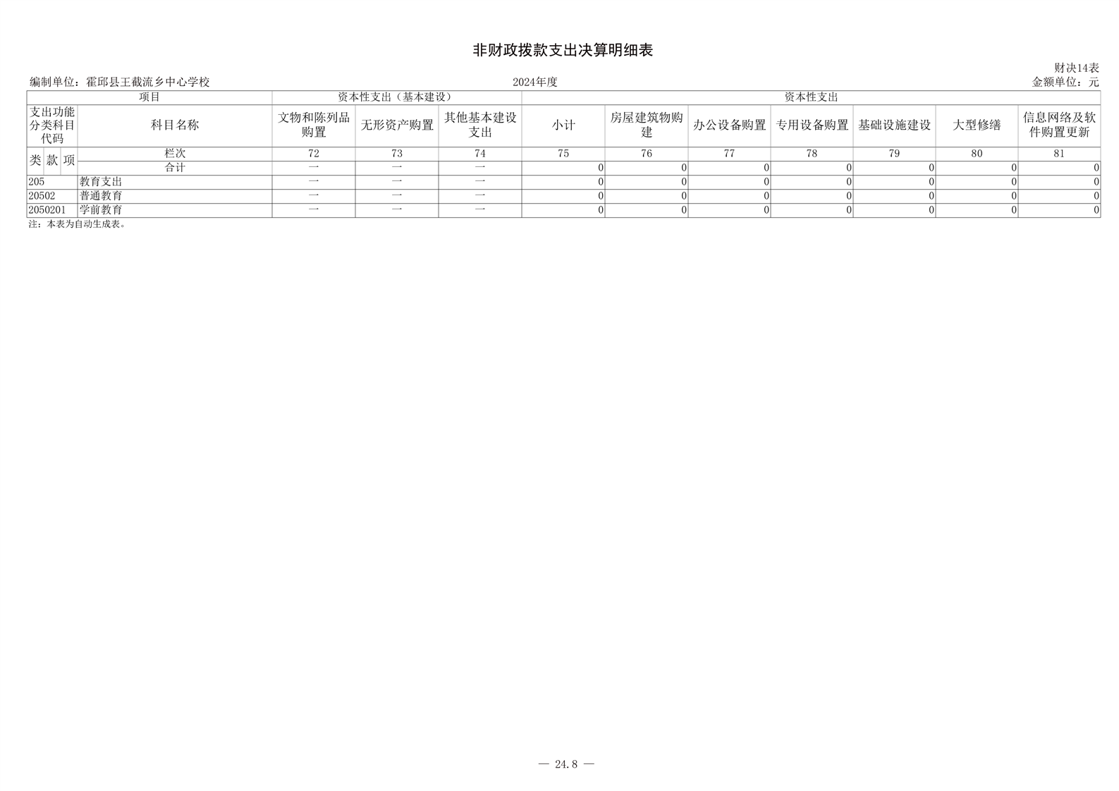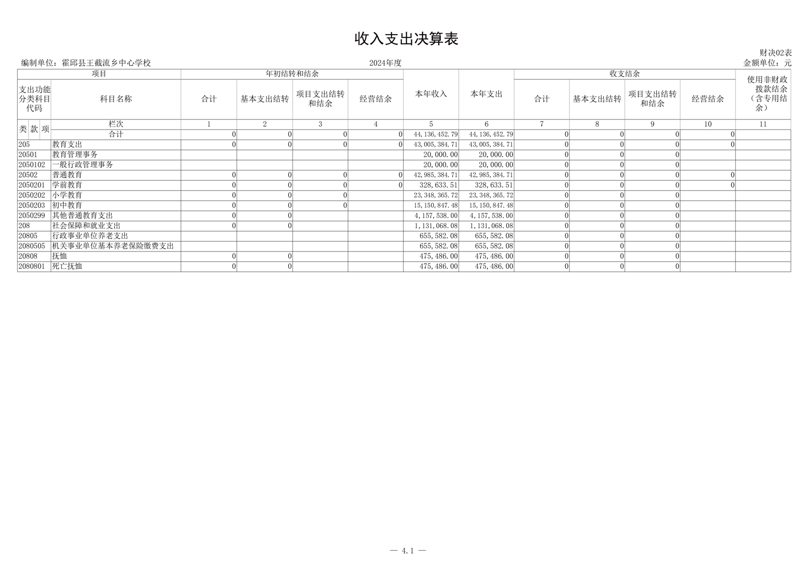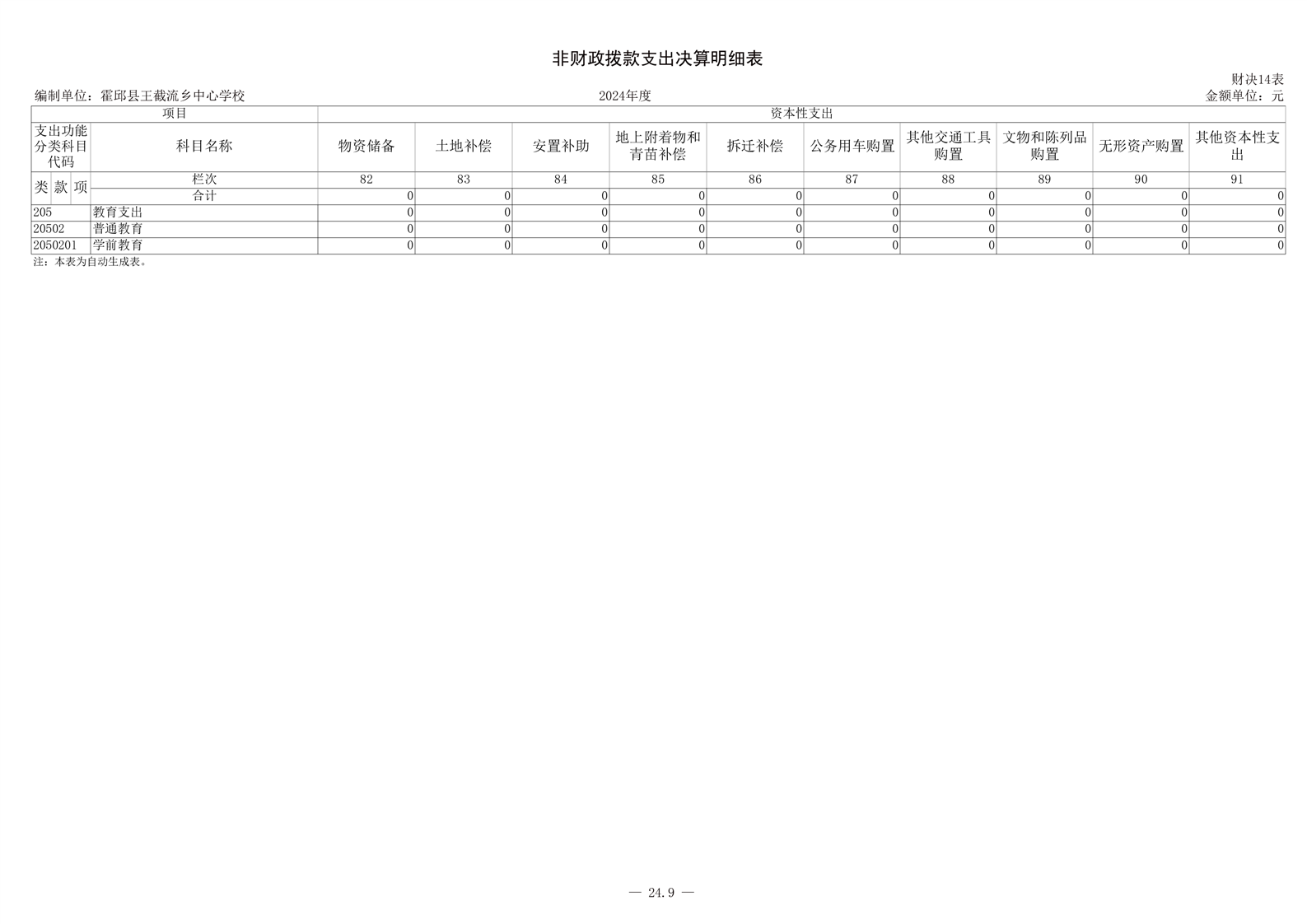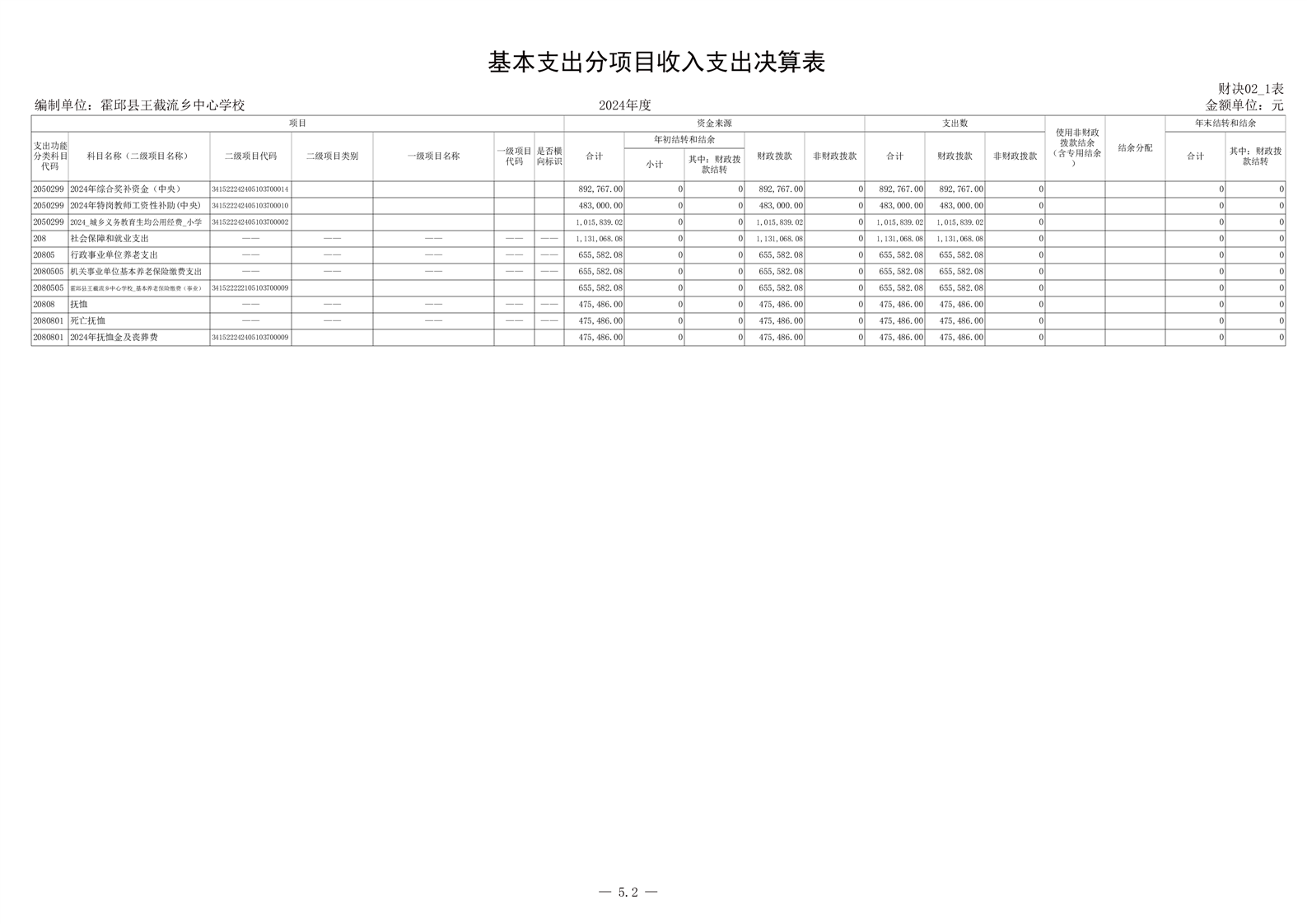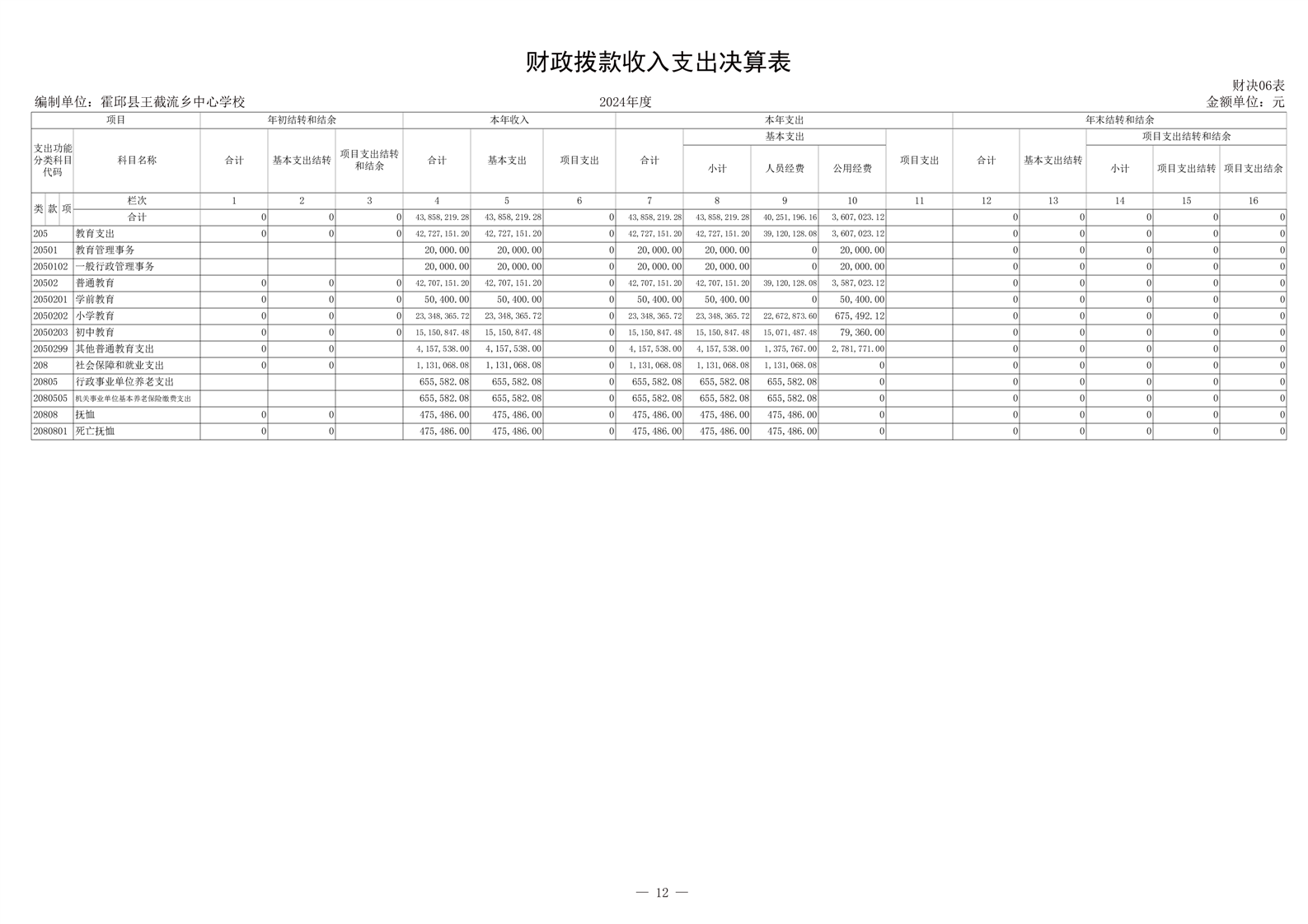 霍邱县王截流乡中心学校 2024 年度单位决算